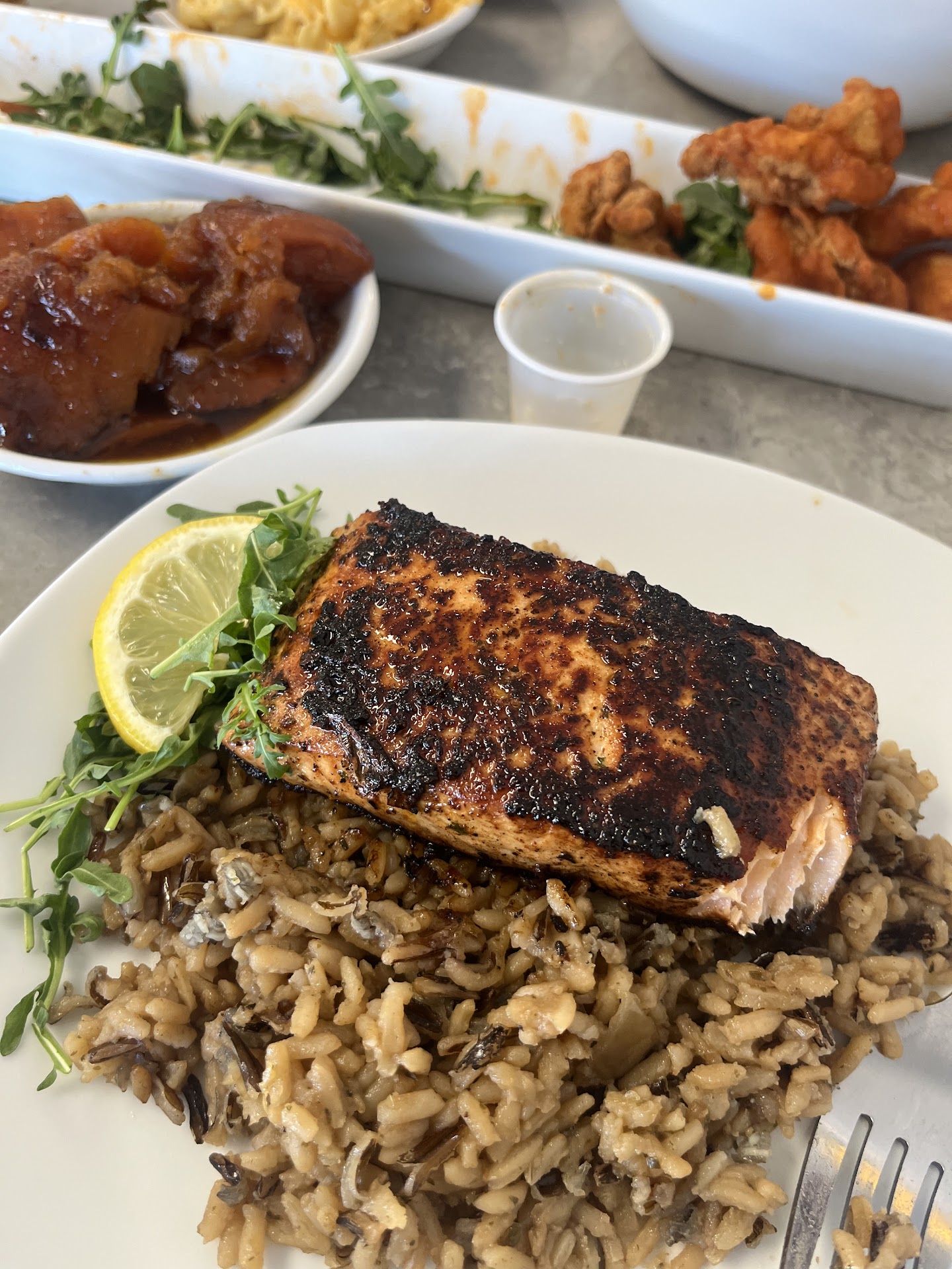 Sorry I didnât get pictures of the food because one my phone went dead and the other is because I still wouldâve probably forgot because once the food was set on the table I was ready to eat. But I did get one...