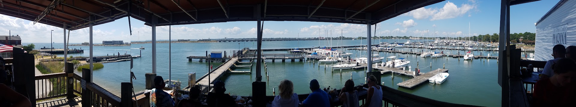 I so wanted to post a great review of this place. An outside table, overlooking the water, Bloody Mary's made with homemade mix and garnished with not just olives but yes bacon, the place was prime for a 5* review. But alas, it was not fo be. We arrived at noon, not in a hurry, meetng friends for lunch. The hostest greated us cheerfully as we climbed the outside stairs to the second story restaurant and said she'd be right in to help us out. We put our name on the wait list for an outside table for four, and grabbed a seat at the bar while we waited both for our friends to arrive and the table to open. The bartender promptly took our order and freshly made us two very good Bloody Mary's. Honestly, this turned out to be one if the few highlights of our visit. Our friends arrived, and we were promptly seated at our table. The harbor view was exactly what we came for and the atmosphere was great. Our waiter came and we ordered drinks and fresh calamari. A short time later we placed our lunch order and settled in to relax and enjoy. The calamari came and it did not disappoint. Fresh, piping hot fresh from the kitchen, and deliciously tender - a definite must have if you visit. Little did we know it would go downhill from there. We had ordered cajun fries, and we were provided with a small dish of cajun seasoning and a comment that the kitchen only had a couple of people working so that would help speed things up. Honestly not sure how sprinkling the seasoning on the fries in the kitchen was the step that would send the kitchen into chaos, but we were fine with the "some assembly required" request. About 30 minutes later, our waiter informed us our food was next on the list to prepare, and should be out shortly. We were having good conversation and not in a hurry, so that was fine, until ... Our food arrived, and upon opening one of our sandwiches, an 8-9" hair appeared right in the middle of the sandwich along with the salmon. Having been on the receiving end of problems before, I calmly walked the sandwich back inside to let them know the hair was not something we had requested. They took the sandwich and said they would have a fresh one right out. It really was replace fairly rapidly, although it did cause the rest of our party to be finished eating before the last was served their replacement sandwich. Had our experience been handled differently, I'd probably still have left a 4* review, but success in the foid service industry is in the details. At no time during this hairy escapade did anyone ever come to apologize. Not when I returned the sandwich, not when the replacement was brought out, not when the meal was complete and the waiter asked if we wanted dessert. The icing on the cake was the bill that was brought out, complete with the full price invoice for the sandwich with the hair, and no apology for the mistake. Not even a visit from a manager to apologize for our experience. I guess it should be a saving grace that when "we asked" if they gave a discount or a comp for the sandwich with the hair, they did remove it from the bill, but again only because we asked. I do hope the restaurant management sees and reads this review. The place is nice, and otherwise the food was good. Hopefully they can use this review to share with their staff as a "how not to" give good customer service. A little apology would have...