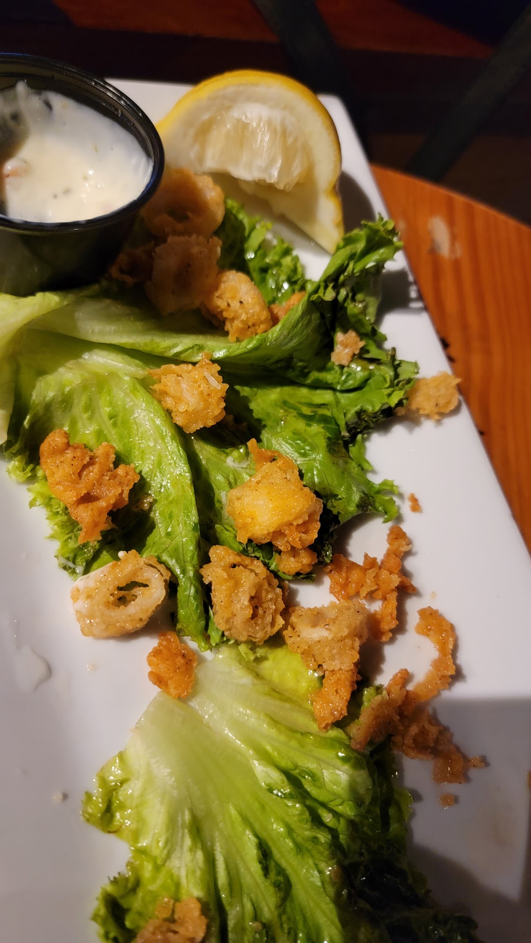 Read moreIf you're within an hour or 2 drive of here, stop in. You won't regret it. We were vacationing in Williamsburg...we actually were supposed to be in the Marina but our reservation got canceled by the Airbnb host due to electrical issues on the boat but that's another story....I had already planned to eat here so we made the trip from Williamsburg... and so glad we did. Upon entering we were greeted by a girl who ended up being our server. We were seated at a high top. Our server (younger blonde girl.. I wish I remembered her name) was very friendly and very attentive. We ordered calamari which was delicious and fresh. (I forgot to take a picture until it was almost gone) I ordered the Deadrise burger and fries with a house salad. It was like a smash buger and cooked perfectly. The fries were great as well. The salad was a salad (large chunks of cucumber) My wife ordered the loaded fried seafood basket with shrimp and oysters. It came with fries hushpuppies and coleslaw. Luckily she shared the oysters and hushpuppies. She said the shrimp was the best she ever had...incredibly fresh and delicious. I grew up eating hushpuppies and I can say without a doubt, these are the best I've had.... very crisp outside, soft and moist inside but not mushy... and full of flavor. The oysters were very good also. The atmosphere was great as was the location and view even though it was night and raining. There is also a full bar area which we did not have any drinks from but looks to have plenty of variety. I would frequent here often if I lived...