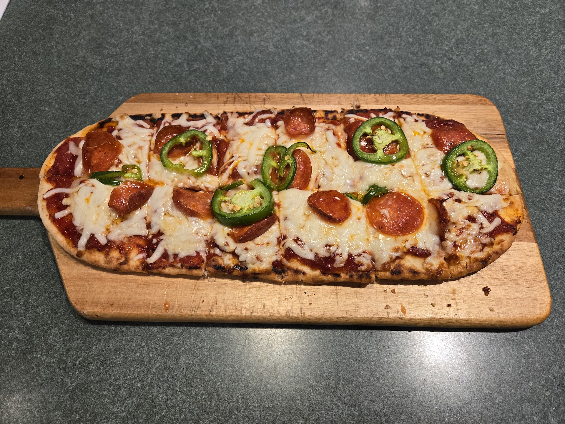 I got the flatbread pizza and some wings with a dry rub. Both were hot and fresh. The pizza was great, everything I was expecting. The wings were good but had very little seasoning. I would have liked to see significantly more seasoning as, with the exception of one wing, they were basically naked wings.
