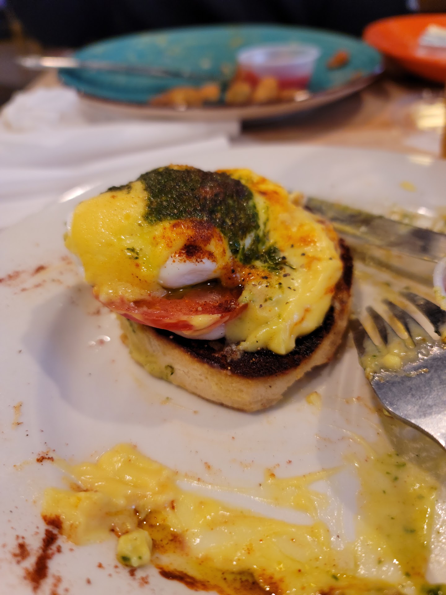 Read moreExcellent food! I had the avocado toast which comes with tomatos on a delicious thick sliced multigrain bread, and pictured is the Caprese Benedict which was absolutely the best benedict I've had in a while. I believe the english muffin was homemade, and even if it wasn't it was perfectly toasted. The egg was also perfectly poached - hence the pictures. The benny cost 14 dollars but the portion is a good size and the home fries that come with were absolutely crazy good - crispy on the outside and seasoned really nicely. I also had an iced green tea, the tea was brewed very well.