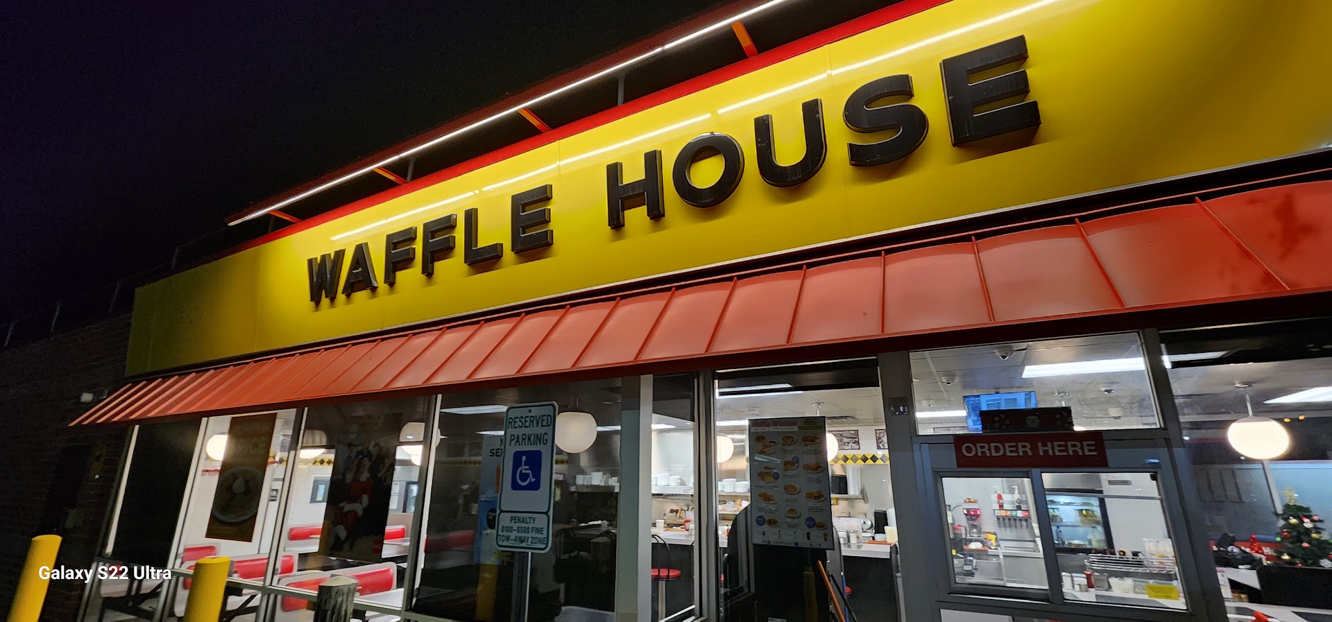 Edit: Forgot to mention, the Waffle House sign here is quite short, so if you are accustomed to the tall signs you can see from far away, keep your eyes open so you don't miss this gem.