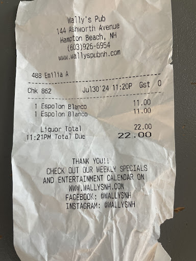 Read moreWhile vacationing in Hampton Beach, we decided to grab burgers for a late lunch from Wally's because it was within walking distance of our hotel room. This was around 2pm (06/29/22). Before I even mention anything about the food, let me just say that the woman who took my phone call was extremely impatient & had a rude tone as well. That was not impressive at all! Here I am on vacation with my family, the last thing I want to deal with is a nasty, bad attitude. Anyway, we ordered our burgers to go & because I was ordering for three different people, I was trying to be as specific as possible about what each person wanted on their burger. The woman had questions for each burger which was understandable, such as how did we want them cooked & what kind of cheese on them, so I explained this to her. In the midst of giving my order (and speaking clearly & slowly!) she literally cuts me off hastily mid sentence to ask a question, so I again explained in detail again what each person wanted. She got all flustered over something, and told me she had to "start all over again" because obviously she didn't have this written down correctly the first time. Unless they charge for condiments, I don't understand why she couldn't just add them after? She told me 20-25 mins which seemed like kind of a lot for a few burgers, but regardless they were ready upon arrival & they were fairly decent burgers. However, like I said, very rude service over the phone when ordering, as well as in person at pick up. I sent someone other than myself to pick up because it would be easier & faster, rather than walking with my little ones. They also forgot mustard, which I ordered for one of the burgers..I told her I wanted everything on the side, so you'd think everything would include mustard, but apparently not! The prices were fair. I would've preferred not to be treated disrespectfully though. Not sure if we'll be returning. The burgers deserve at least 3 stars, service is much less. Maybe she shouldn't take orders if she finds it so stressful! Especially considering the fact that Hampton Beach is a popular tourist area & vacation spot, you'd think they'd be familiar & experienced with large orders, and this wasn't even really one! Please be more polite to your customers, Wally's. It would be nice to rate the service as well...