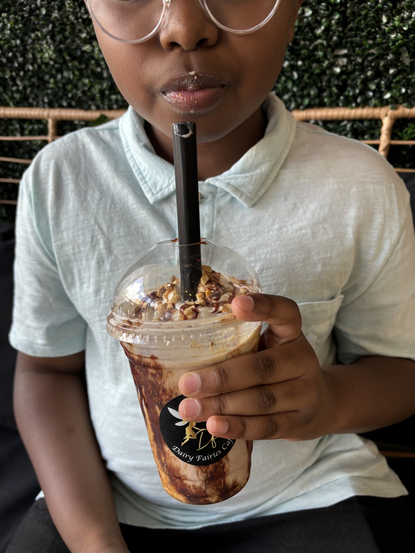 Upon entering, we were immediately captivated by the cafe's trendy decor and vibrant atmosphere. The logo was stylish, and the whimsical fairies adorning the walls, along with the ropes and faux vines draping from the ceiling, created a lively and inviting space. The cafe was spacious and impeccably clean; even the bathroom exuded a fresh scent, which added to the overall pleasant experience. However, the decor was merely a backdrop to our main objective: indulging in some delightful treats.