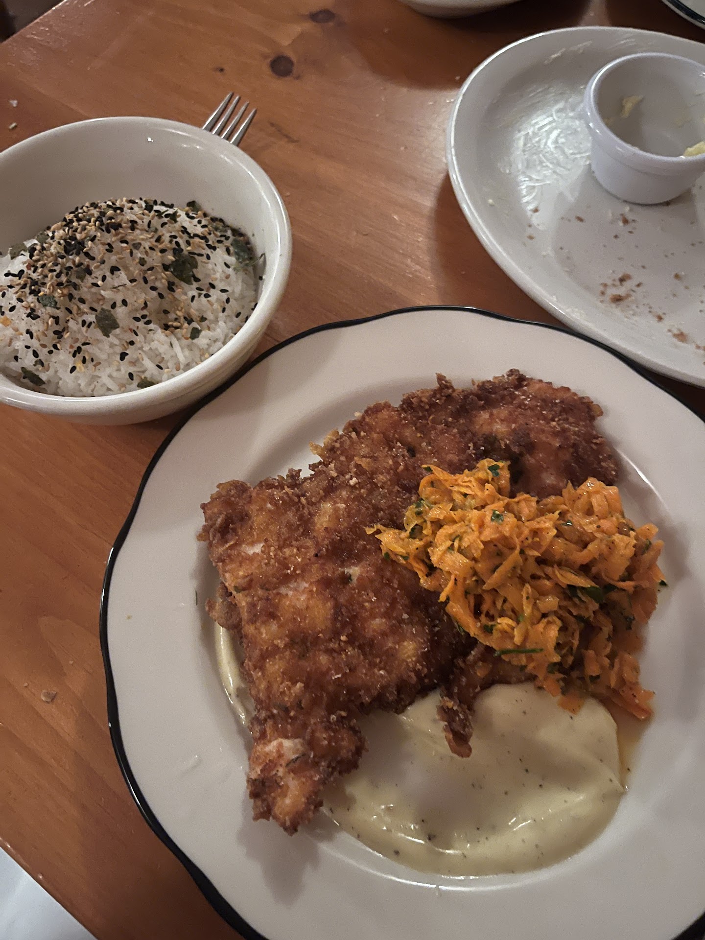 The value on this order was in the kid's order for chicken fingers. These were genuine, substantial filets of chicken, generously breaded and fried, with gorgeous double-fried potatoes. (See above comment about the ketchup, though they were also tasty dipped into the labneh and the sour cream from the potatoes.)