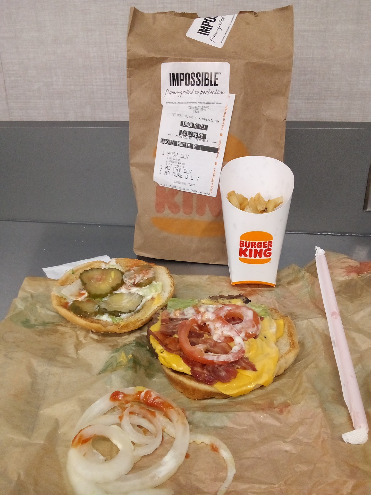 First of all; I didn't get my drink, straw but no drink, so my Uber deliverer bought me one, from her own pocket, to make up for it. Second; I didn't get Any napkins whatsoever. Third; I did not get ketchup for my fries, which have been Very Salty lately. Fourth; I asked for No Onions and my Whopper sure looks like there were Extra onions put in đĄ Lastly; there was very little lettuce on my Whopper. I remember when they used to have so much lettuce it would fill you up! All of these mistakes and it wasn't even the hight of lunch or dinner hours, it was 3pm đ¤ˇđźââď¸