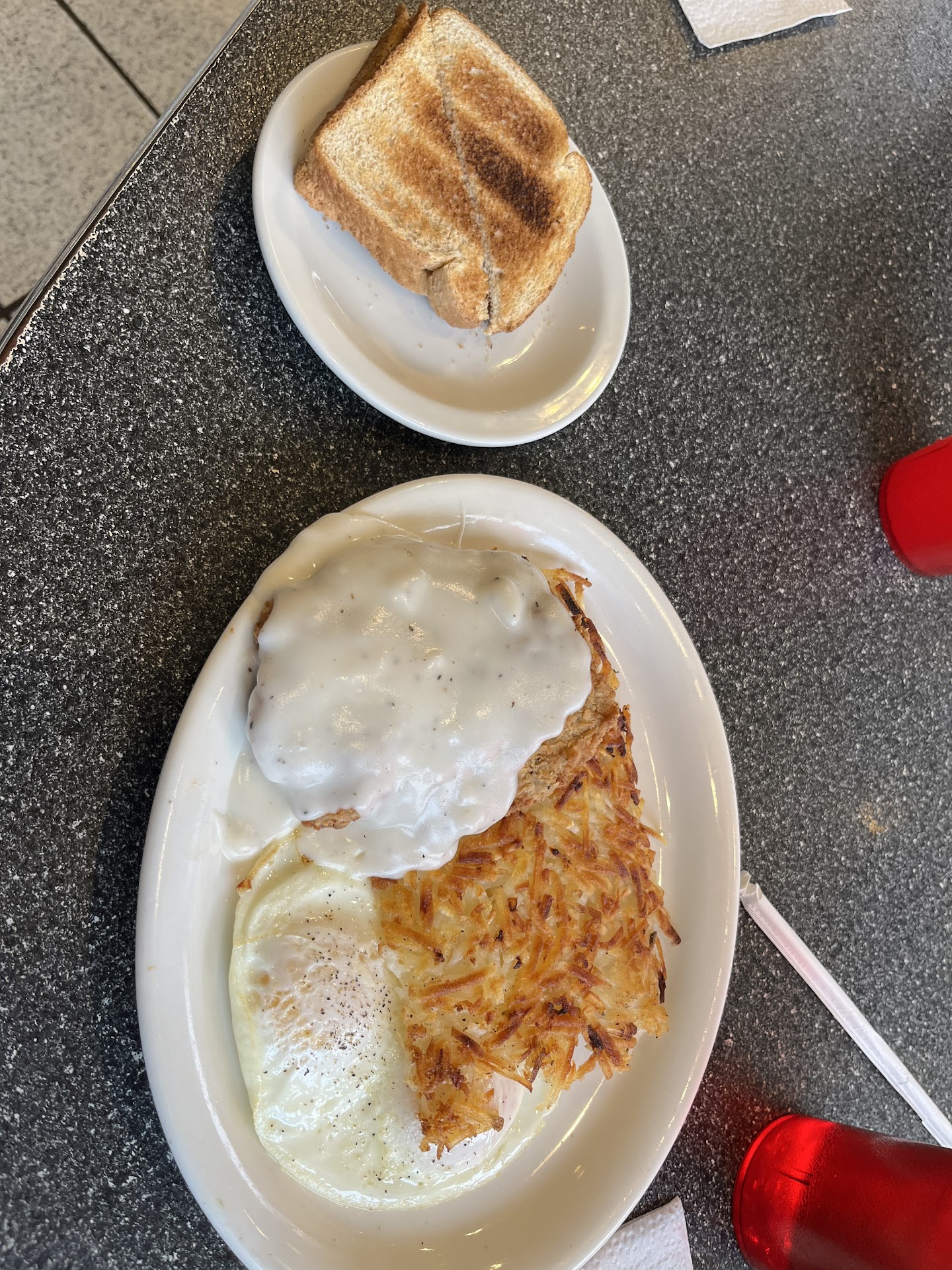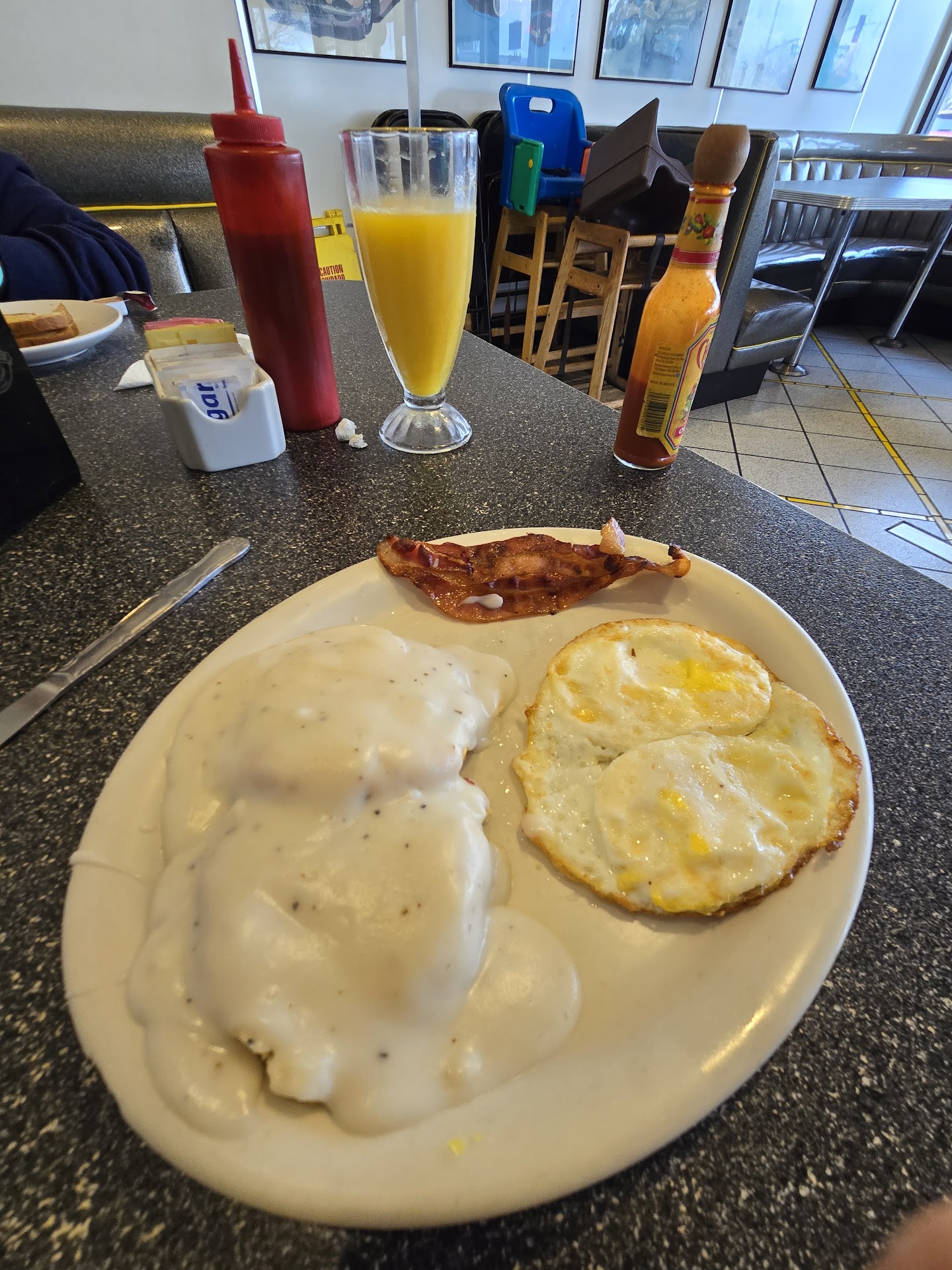 LONG VERSION: I'm always on the prowl for a good breakfast, and this faded diner is between my house and work, so I stopped. I'm told it's part of a chain, but it's so worn it seems to be a mom and pop. I passed it by a couple of times before I realized it was still open.