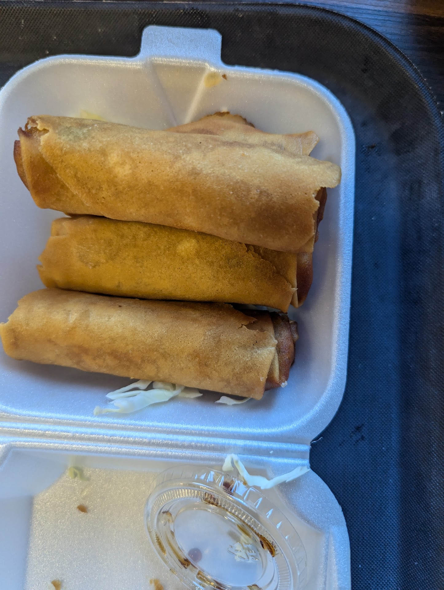 I ordered the dark spicy ramen, and it was really good. My wife ordered the curry ramen, and it was even more delicious with just a hint of sweetness. We also got a side of their chicken karrage, egg rolls, gyoza, and tempura shrimp. All of them are served with a sweet sauce that reminds me of teriyaki for dipping. I had a mango cream soda to drinkāit comes in an aluminum bottle, and I really, really liked it. Iād love to know where they get it so I could keep some at home. Iām a fan of almost anything mango.