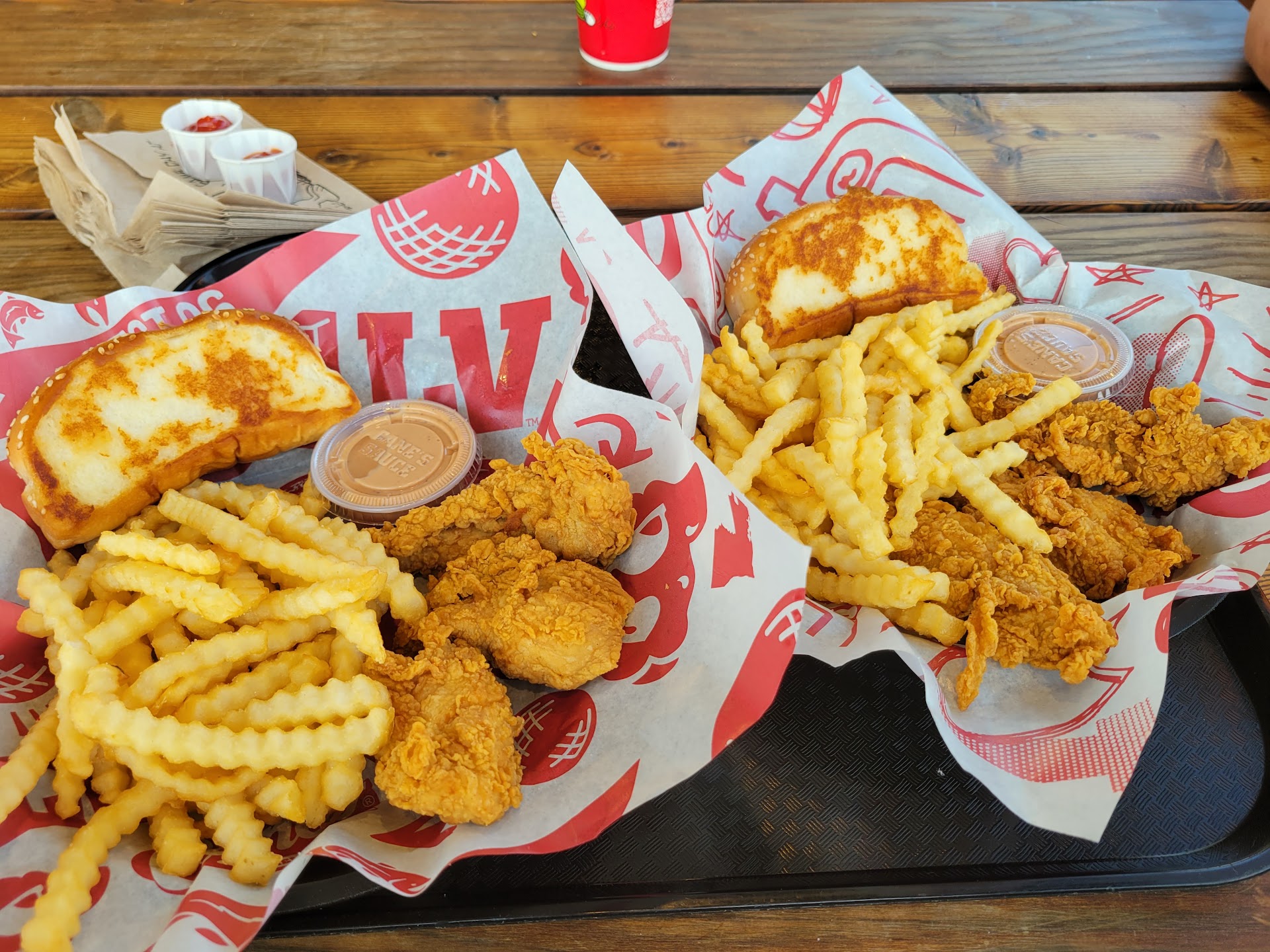 Read moreMy wife is from Texas and said she always used to go to Raising Cane's because it's delicious. So I said let's try it out since we found one in Hanford. Atmosphere and service was great. We ordered the 6 piece meal (3) and extra bread because my wife said the bread is the best. To make a long story short I could have easily gotten great value breaded strips, great value tots, and great value Texas toast and warm it all up in our air fryer at home; and would have paid less than half of what I paid for and have had a better meal at home. I paid about $56 for mediocre falling off the chicken breading, random small pieces of thin oversalted fries, tasteless bread (although the texture was perfect), bland Cole slaw, and average sauce. Great value fry sauce tastes better than Raising Cane's sauce. Over priced below average food and we will not be going back. For such a limited menu I...
