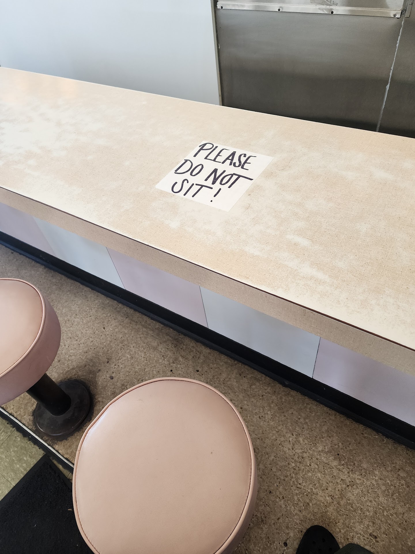 Many others have posted, but there’s no seating inside, you have to take it to go and eat in the triple digit heat (when I went). There’s signs everywhere saying “don’t sit” while we waited in line for 40 minutes, and it just comes across as sort of rude and and unwelcoming.