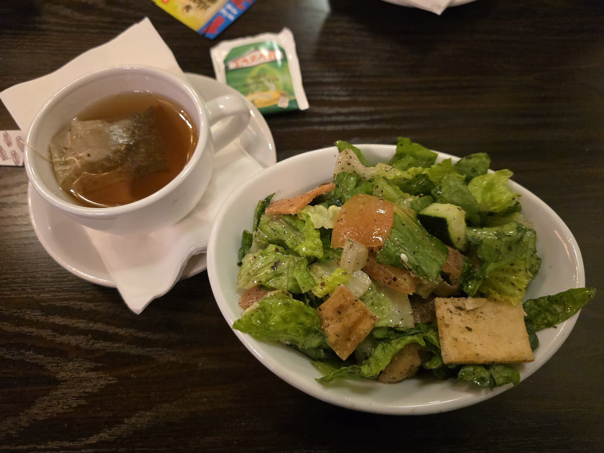 We ordered the Lamb Shank for my girlfriend's parents to share. The Lamb Shank was massive, coming complete on it's own plate with potatoes, carrots, celery and onion, including the sauce they were roasted in. It was accompanied by another equally large plate of rice and Fattoush. We never got to try it, but given the level to which my girlfriend's father enjoyed the dish and raved about it afterwards, I know it was just as good as our Shawarma plates.