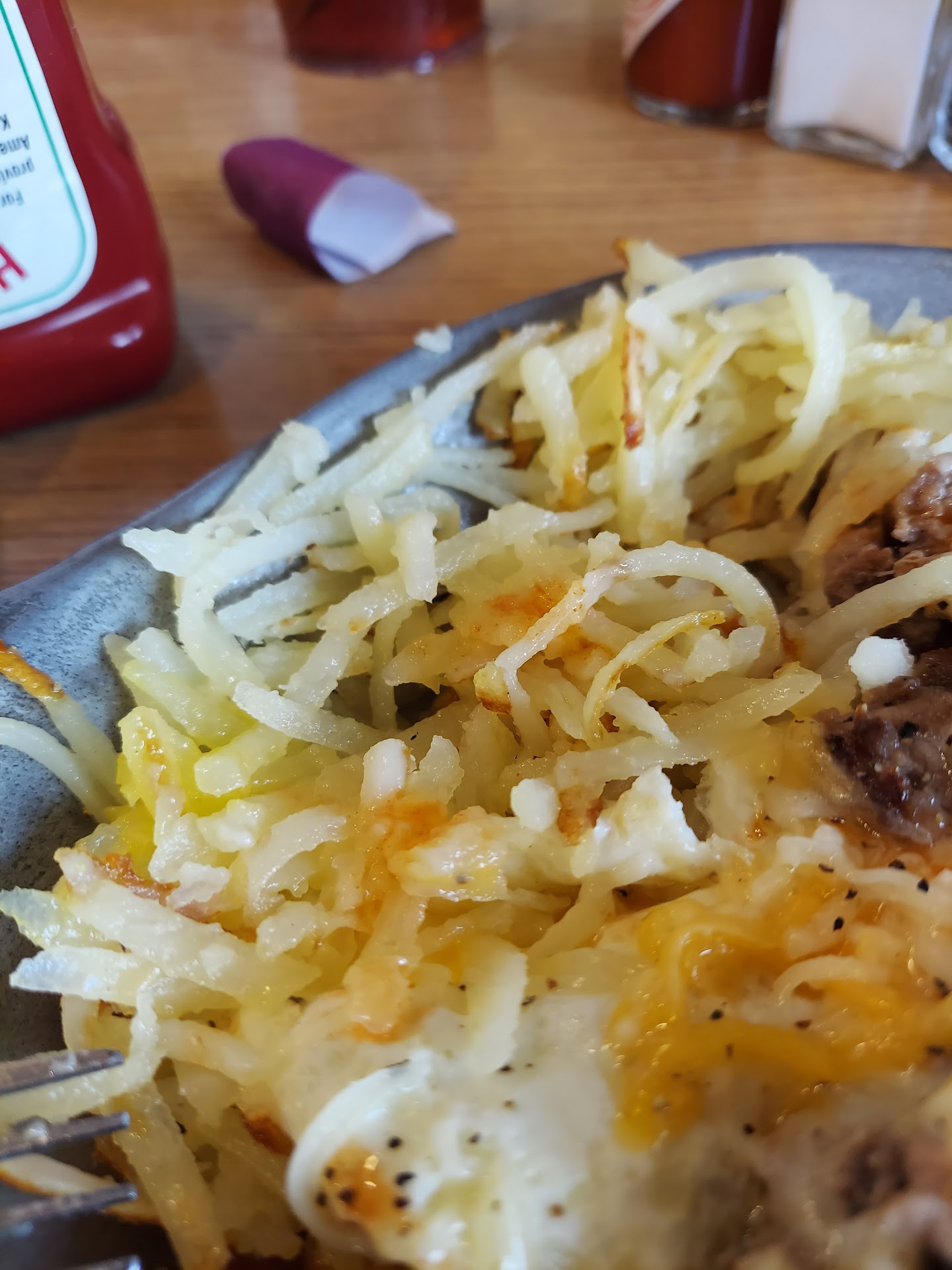 Read moreThis by far was one of the worst dining experiences I've ever had in my life!! I ordered the skillet which was extremely dry and very disgusting. My son's fish was raw we tried to tell the waitress and she said that's just the way it is here! They charged me $2 for a bowl of gravy to try to cover up the disgusting this and it was still disgusting. I asked her to please remove the gravy because had I had a decent Skillet to begin with I wouldn't have needed gravy. Then they proceeded to talk to other customers about what's going on with our family. And when my son told her not to be talking about his wife like that to strangers she told him to shut his mouth! Then I tried to tell the manager what was going on with one of his employees talking about our situation to people we don't even know complete strangers and he told me that he did not see or hear anything well no because he's up in the front of the kitchen and she was in the back of the dining area. He told me I didn't need to be hostile when all I did was ask could I please pay my bill after waiting 30 minutes because I asked him to remove a dollar 99 gravy. Do yourself a favor and don't come here to eat and they are extremely...