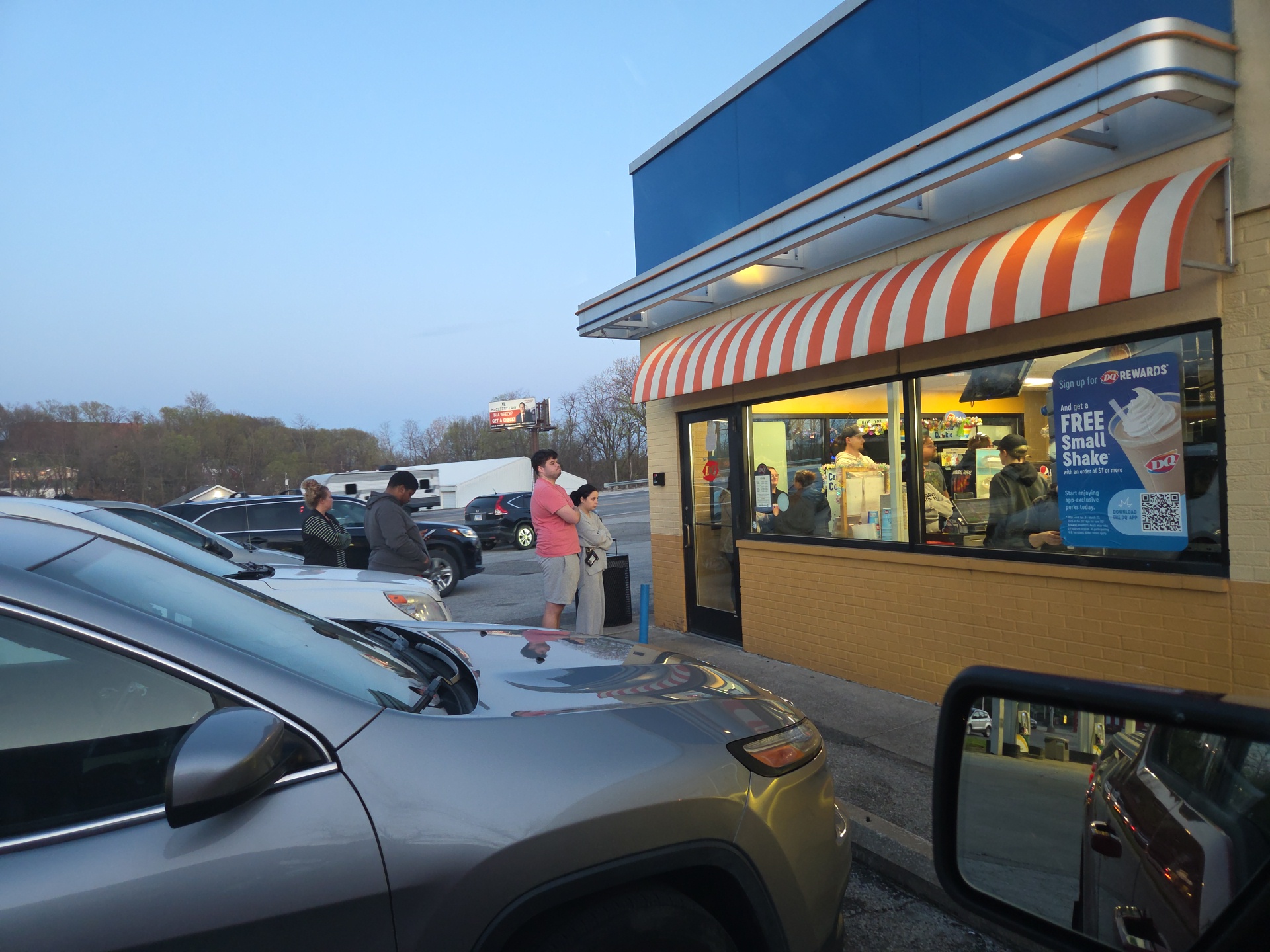 The building is way too small, customers are always squeezing in the hallway size "lobby". We did try to order ahead our most recent order to combat the awkward shoulder to shoulder with other guests, and I don't suggest doing that. Because the blizzards were as runny as a shake. I was 10minutes early and they had them in a cooler waiting for me. I understand holding hot foods in a warmer but frozen foods in a fridge just isn't it imo.