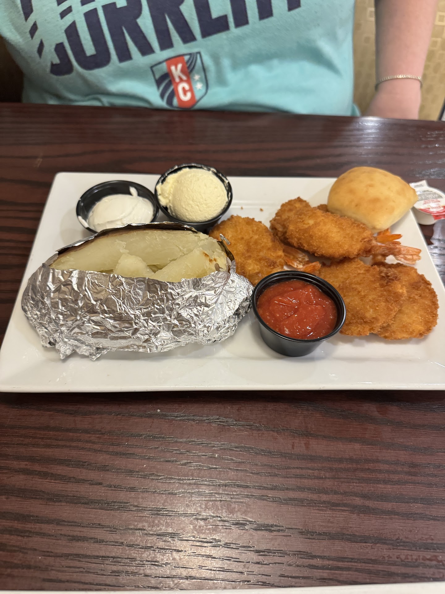 We enjoyed the generous dinner salad which came as part of my wife's fried shrimp dinner, which she LOVED! The salad was HUGE! 4 oz of dressing too. I always have to ask for extra. Not here. If you DO need extra, it's 4 MORE ounces for 59¢, which is a bargain. I can't imagine using 8 oz of dressing, but you do you. ;) The Fiddlestik that came with the salad was delicious! I LOVED it! My wife thought the bread was under cooked, but I like doughy bread (and cookies).