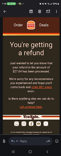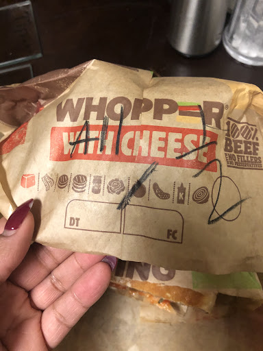 Read moreI usually don’t complain. I went there on 11/2/20 around 9:00pm. I ordered a Whopper with Cheese heavy all with NO tomatoes. I informed twice and when the young man handed me my order. Well I get home and my sandwich is loaded with tomatoes. I noticed on the wrapping that it was crossed out no tomatoes. Ok they made a mistake which could have cost my husband life. I called asked to speak to the manager. He stated he was the manager. I asked his name and he refused to give me his name. He told me I didn’t need his name. He hung up the phone. I went back and asked for the manager and asked the your man the manager name. The manager can to the window still refused to give his name. I have them their food back and requested my money back. He did not apologize for the mistake. I normally order from there with no issues...
