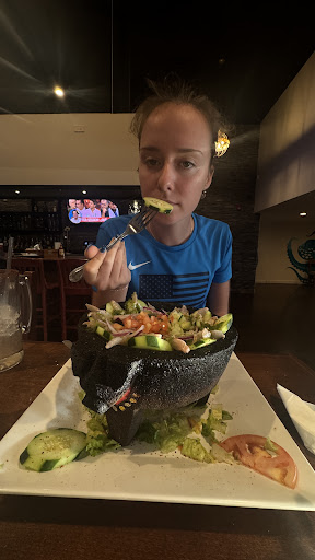 I didn’t get photos of everything cuz we jumped right into eating - but we did additionally order guacamole - shrimp ceviche - fish tacos (comes with French fries) - most entrees are served with rice & French fries. We were somewhat turned off by the thought of French fries but we found ourselves dunking them into the fabulous sauce in the Molcajete de Carnes pot & then couldn’t stop eating them.