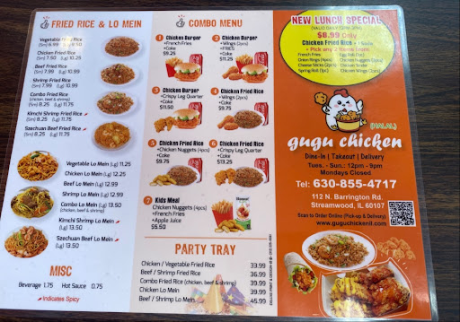 Read moreWe've now visited GuGu Chicken twice and tried a variety of dishes. Every dish is carefully and meticulously prepared, the environment is clean, and the service is friendly. We really enjoy the Spicy Chicken Burger, which is a salty, spicy dry rub, but it's really juicy also. We've tried the bone-in in GuGu chicken with super fire (extremely spicy, but flavorful. HACK: Pull it off the bone before eating and the spice level is much more manageable bc you don't get that sauce first), garlic soy (tasty!), cajun (on the salty side), and sweet and spicy (like the super fire but much milder). The bone-in chicken is super crispy and juicy, and our kids even loved it without any sauce. The fried shrimp is a good size with great coconut flavor and super crunchy as well. As for sides, we all liked the fries and chicken fried rice to go along with our meals. Also note their sign currently still reads "June Heng" which is the previous restaurant.