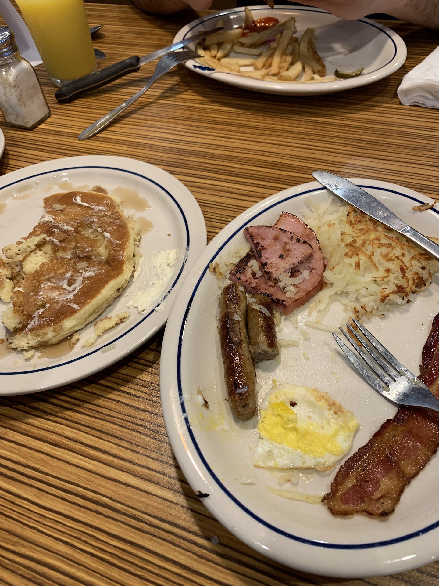 Read moreWe've just returned from dinner at IHOP. Apparently, they were having a difficult night. As we sat down, the manager was profusely apologizing to the two couples seated near us. They had only received two of the four dinners ordered and the waiter failed to return for a lengthy period of time, leaving two of the people with no food.