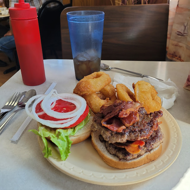 You wouldnt think much by its outward appearance but, as the old saying goes, "dont judge a book by its cover". My husband & I were visiting Mohican Adventure for the day for his birthday & our 5th wedding anniversary (it's on the same day :] ) and I had googled restraunts nearby the day before. I found this little gem & had seen what lovely reviews it had. My husband and I dont like to goto the bigger places and always try to find the "mom & pops" or "whole in the wall" type places because those are usually where you find the most passionate people who really love what they do & want to serve home cooked type food. So glad we did! I didnt catch our sweet waitresses name, unfortunately. She had dark hair put up, glasses, and just as sweet as could be! She always made sure our drinks were full, was thorough with taking our order and making sure it was to our liking, even giving us suggestions when we wasnt sure. Which I felt like it was very helpful. As a "foodie" , one thing I have learned is- the smaller the menu, the better/fresher the food! And it's always been true. Delicious, huge, fresh cheeseburgers on grilled buns with all the toppings! Freshly made onion rings that werent greasy as well (a lot of places make them so oily) and delicious! We joked around about it being his birthday and our anniversary and that it would be funny if I told them to sing happy birthday to him cause he hates it. Haha! Our amazing waitress went and got the COOK and another waitress and sung to him even though they dont normally do that! And they were so funny and kind about it, it really made it such a great experience!! Also, the prices! The prices are SO affordable! We were on a strict vacation budget so it was so nice to find a place that didnt over charge you. We was even able to get 2 scoops of their HANDMADE ice cream (mint chocolate chip) each, and my husband got a piece of their to-die-for, homemade crust & all, coconut cream pie. He said out of all the desserts he has eaten that it was the best coconut cream pie ever! The ice cream was so creamy and delicious! Our whole meal plus drinks and sides with desserts was only $25! Thats an amazing deal for such yummy food! I really didnt plan on writing so much but I hope others find this wonderful place with such nice staff and give it a try! Just because it doesnt look fancy doesnt mean it's not QUALITY dining! Thanks for making our trip so much fun and giving us a great memory. When we come back next year with our kids, we...