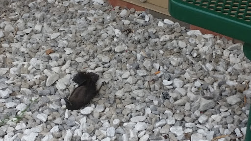 The buffet was still there with people eating from it. We walked outside to find a dead bird next to a bench. Seemed...