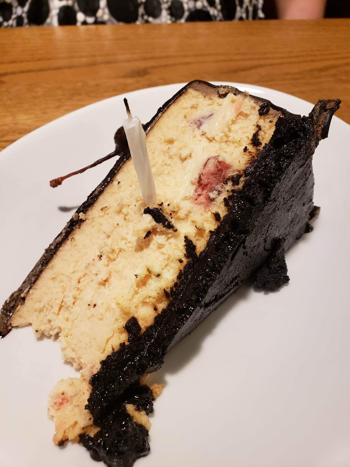 For dessert I did mention we were using the Valentine's menu and asked if we could get a plain slice of cheesecake instead of the cherry one on the menu. Our server said sure.... But we were given the cherry one anyway. Again, not a big deal because at this point we were both stuffed and we did pick at it to try it (it wasn't for me).