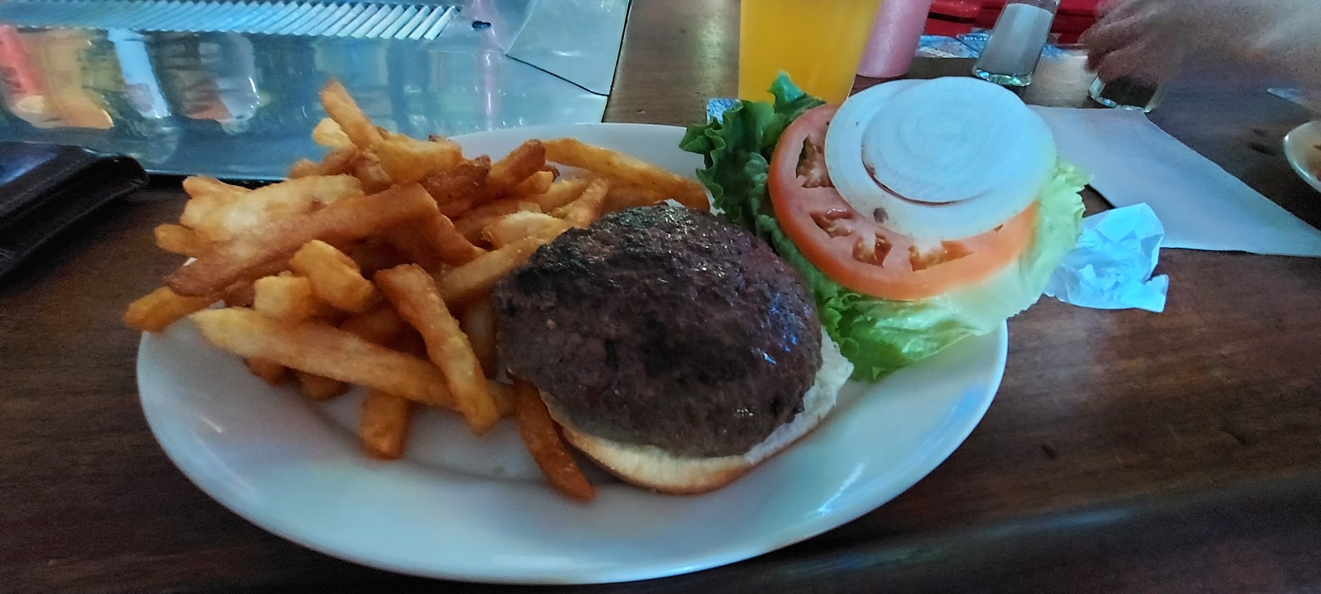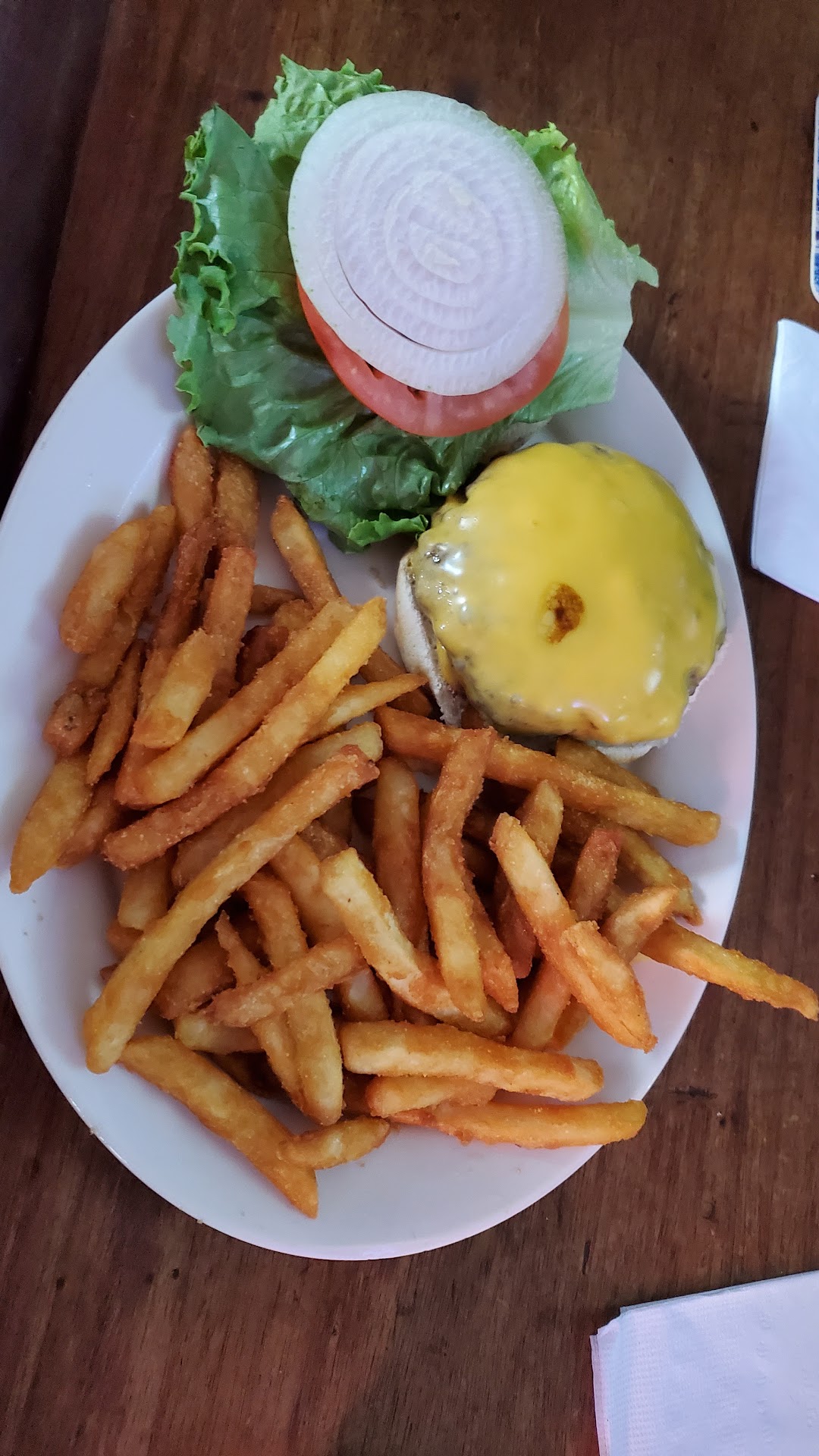 No nonsense tavern. Bar seating plus a couple of tables available. Plenty of parking. No loud music - in fact, no music at all! I can actually hear people talking without having to yell. They have at least 4 tv's playing with sports. Draft beer selection is Shock Top, Stella, and two types of Bud. Fries are good and crunchy. Burgers are a good size. I asked for mine medium but it came a little more on the rare side with blood oozing but it was still ok. Menu is super simple and easy. This is cash only! I didn't get a receipt so I don't actually know how much my burger, fries, and Shock Top beer was individually, but it was a total of $20.54...