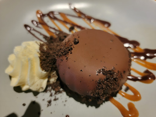 The "milk and kumquat braised loin Puree of Jerusalem Artichoke, Bacon and Brown Bread Panzanella"...oh boy. I'm picturing a stunning, falling apart, melt in your mouth BRAISED pork loin and it was everything but. First off... 100000% not braised. It was a grilled or sautĂŠed pork chop loin, like the thick ones you can buy at the grocery store. Was tough and the artichoke purĂŠe was cold..not even a little bit warm. The panzanella and everything else on the plate was so sweet. I was wanting some salt and more savory flavors but none to be found.