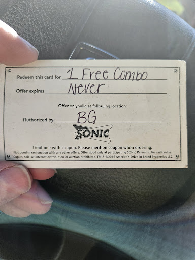 Read moreMy son wanted to try sonic for the first time so we decided to give it a shot, well wouldnât ya know it, we waited in the drive through line with several other and nobody was taking orders, finally an employee came out and said the headset was having issues and for us to please pull forward, I thought great all these cars and they look understaffed, the employees are probably gonna be nasty to deal with, to my surprise, a lady came out, hand wrote our order and gave us the total!! She was awesome, very pleasant, friendly and just all around nice, we pulled up to the window only to find yet another smiling happy employee, very pleasant,apologized for making my ice coffee the wrong size,,,, it was larger then what i asked for!!! And then the food came out nice and fresh and hot!!! He warned us to be careful especially if we were giving it to a kid because it just came out of the fryer!!!! Thatâs customer service, clearly they were struggling with the equipment but man their personalities and just awesome customer was over the top!!! Hats off to these employees!!! If I had a business that required face to face customer service I would steal them from you in a heartbeat!!! Our visit was 10/23/2022 at approx 4pm management,,,,,, these employees should be commended for a...