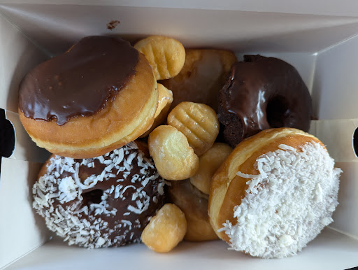 Read moreFINALLY a local donut shop with the kind of glorious raised donuts we were missing... and excellent fritters. Apple fritter had nice chunks of apple, crispy, tasty glaze. So happy to have this shop in Happy Valley. Definitely be back... for reference, Voodoo is simply too much for us, way too sweet and our opinion their donuts have little flavor (a lot of color, little flavor). Coco Donuts is nice, but too understated. Completely non-fans of Krispy Kreme, find their donuts also completely tasteless. This is the wonderful happy place in between. Plus, they're open later than many donut shops. We raised our kids in San Diego... and maybe it's a surfer thing... but there were many donut shops open until midnight. We'd often make a late night donut run. Here most places we've found close midday. This shop is at least open until 5pm which...