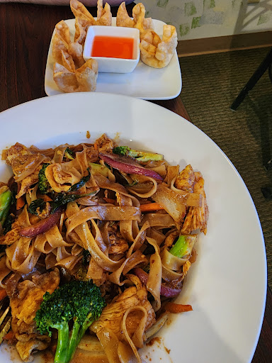 You can eat inside but it's given in al lto go plastic etc which is fine, we were just more hoping for a real restaurant feel that evening. Veggies on plates, great, meats tasted good, lo mein noodles were not good at all. They use these really tiny spongy noodles and the sauce wasn't great. I mentioned my daughter didn't care for the food, when they came out and no response,again, other parts of the meal were fine so we just shared the rice and soup, egg drop soup was good, we will say serving sizes were smaller and price was quite high. We go out to eat often and always support local places and honestly as a big girl, it's hard to not impress me so I'm realistic, it was a decent lunch but for the 3 of us, it did cost us almost 90 dollars We bought 1 order of spring rolls(tiny little ones) Sesame chicken with veggies 1 lo mein noodles order 3 waters and 1 hot1tea(waiter did ask 2 times if we needed more refill on thise so great service there) 1 pad Thai Meal total $88 Lunch time...