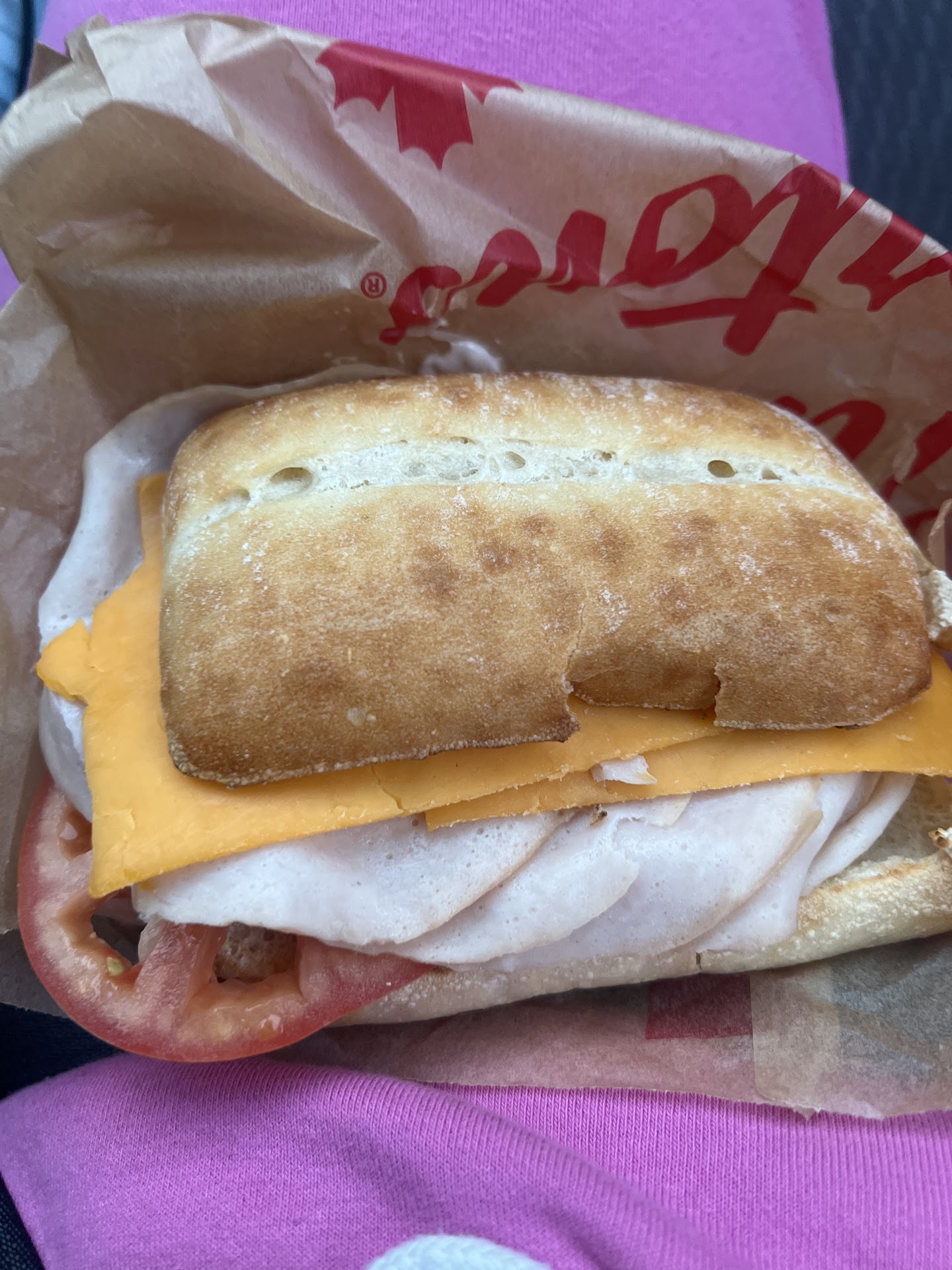 The egg & sausage on English muffins was delicious. Just what you would expect from a chain restaurant. The staff there was very helpful (specifically the female cashier) and saw everyone busy trying to fill orders.