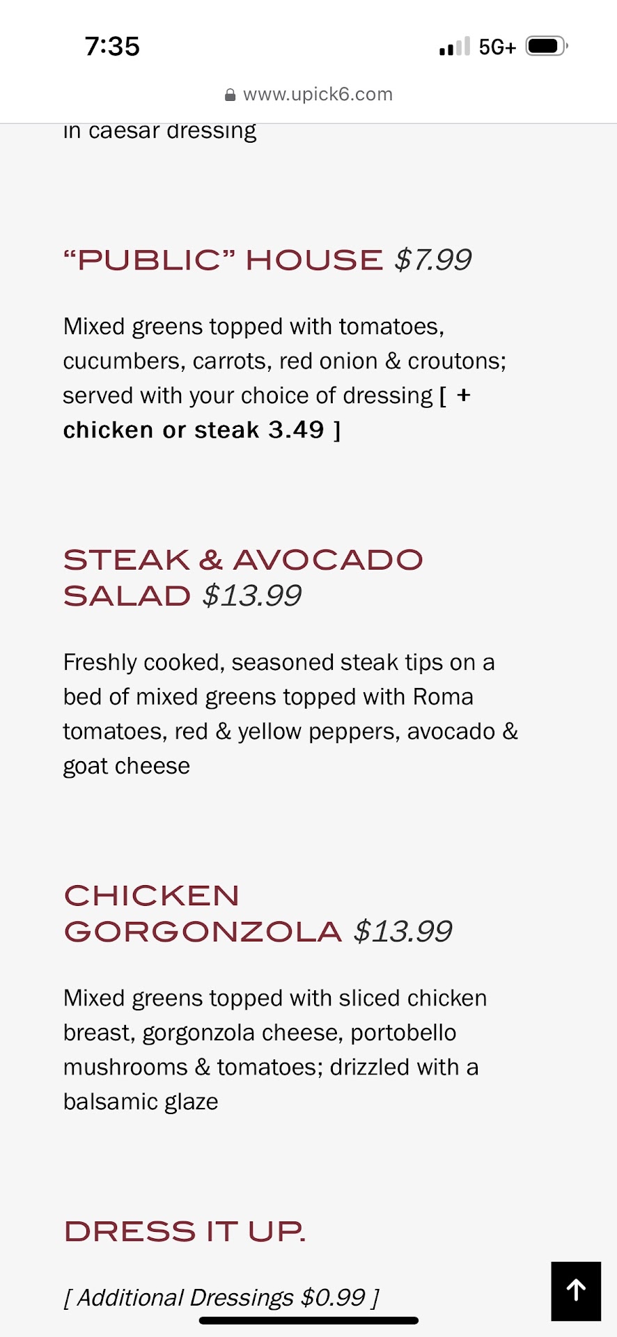 There is a also a variety of salads and sandwiches and appetizers (including vegetarian options) . Not quite as adventurous gastropub fare as say Jekyll and Hyde's downtown but definitely not a sparse menu.