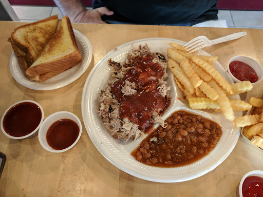 Pulling off the street , you may get a bit confused between the entry to the restaurant and to the motel. There is a large parking lot but no real parking spaces. Walking up a slightly steep walkway is the entrance. When my family went inside we noticed a very large open space to the right. With the ordering " window " right in front of us, the board has many options to choose from. Ordering was a bit difficult for me because it was hard to decide if I wanted a plate or a la carte items. After putting in the order and filling up our own drinks ( soda pop, teas or juices ) we found a seat that we wanted. There are options. You can stay inside, eat on a expansive patio or a long the front of the business. We chose inside where it was nice and cool. The lady we ordered from brought out our food when everything was ready. At first look, it looked so delicious. For the most part it was. My baked beans were a bit cold. The pulled pork was dry ( better when putting your bbq ( different heats ) sauce on it ). Unfortunately, the Texas toast seemed as though it was ready first and was set to the side while the rest of the order was being put together. A few of my family members said their food was hot and delicious. I guess what you order and in what order the cooks out the meals together really matter, just as any other restaurant. My family will go back because as I said, 4 outta 5 members enjoyed...