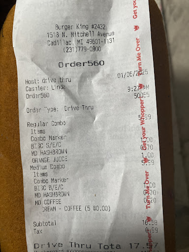 Update May 7 2025 I left a review of this Burger King location a few months ago. It had been a while since we had come in to dine in. We decided to eat in after a long Day in Cadillac because I knew that this Burger King location never disappoints and I was definitely right! As soon as we interacted with the outstanding employee Ariah Sikkema we felt extremely welcomed. She spoke to us as if she had known us for a very long time, striking up a conversation that felt effortless to carry on. I have had conversations with other establishment employees that are somewhat robotic and mundane. That is not the case with Ariah. Her fellow employees worked diligently with no hesitation or distractions focused only on the task at hand. Everyone seemed to be multitasking to keep the operation running smoothly. Shortly after we arrived it began to get very busy. I noticed all the employees stayed cool calm and collected keeping their focus and pace of work constant. The food was amazing and very fresh. I commend the chef in the back for making all the food and keeping up with the busy pace. Shortly before leaving i overheard an employee mention that they were short staffed but with the way the night crew handled things, I would have never guessed. Everything ran very smoothly, the employees were very welcoming and very interactive with their customers. The food was amazing and the establishment was kept very clean and tidy as if a mother in law was about to visit. I will continue to give this Burger King establishment my business and these employees definitely deserve the recognition for their...