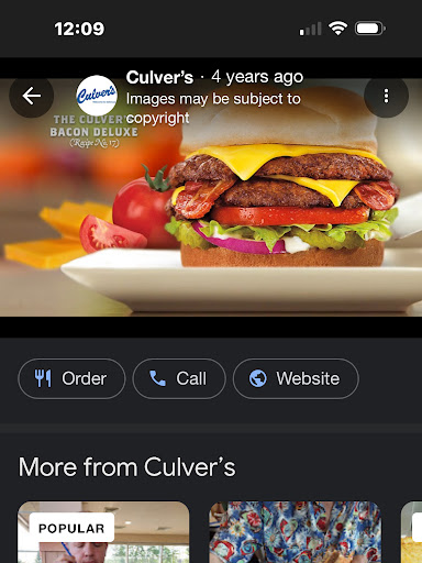 Read moreThis is by far the worst Culver’s I have been to. Literally ever. I spent over $50 here, buying 5 kids meals, and two dinner meals, just for my husband to get home, and realize that nothing we ordered was in our bags. He had looked quickly at the drive thru but didn’t like open boxes to investigate. He got home about 9:15pm, and the Culver’s closes at 10pm, I called quickly and the lady told me I could either come back in before they close, or they would send me a $5 coupon in the mail. Highly recommend you check your orders before leaving at all! I’m not usually one to complain, but Culver’s is by far cheap, and I just can’t believe a manager would offer us $5 off rather than tell us we could come in even the next day to get it fixed. Enjoy...