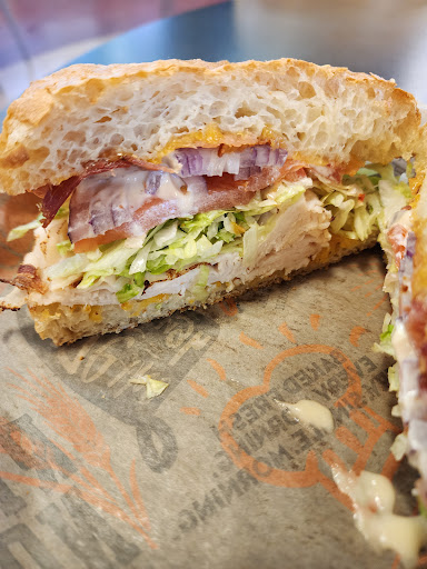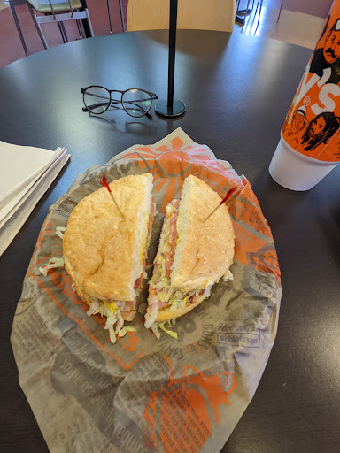 Now inside was like night to day. The sun came up and it was a totally different visit. I ordered the NEW CHEESY MEAL DEAL with a Chicken Bacon Smokecheesy, Small Mac & Cheese and a medium ice cold beverage. I added onions, lettuce and tomatoes to the sandwich. WOW JUST WOW. Rhe food was on point. Service was top notch. The sandwich and the cheesy Mac got brought to my table. They gave me a hot giant Cinnabon Cinnamon Roll free for the trouble. They didn't have to do that but, hats off to them. The manager on duty was very knowledgeable. The inside was nice and clean. But the food, yeah that delicious or ddeelliicciioouuss.....food. It was great. I recommend this location and that meal deal. See my pictures.... CRAM it...