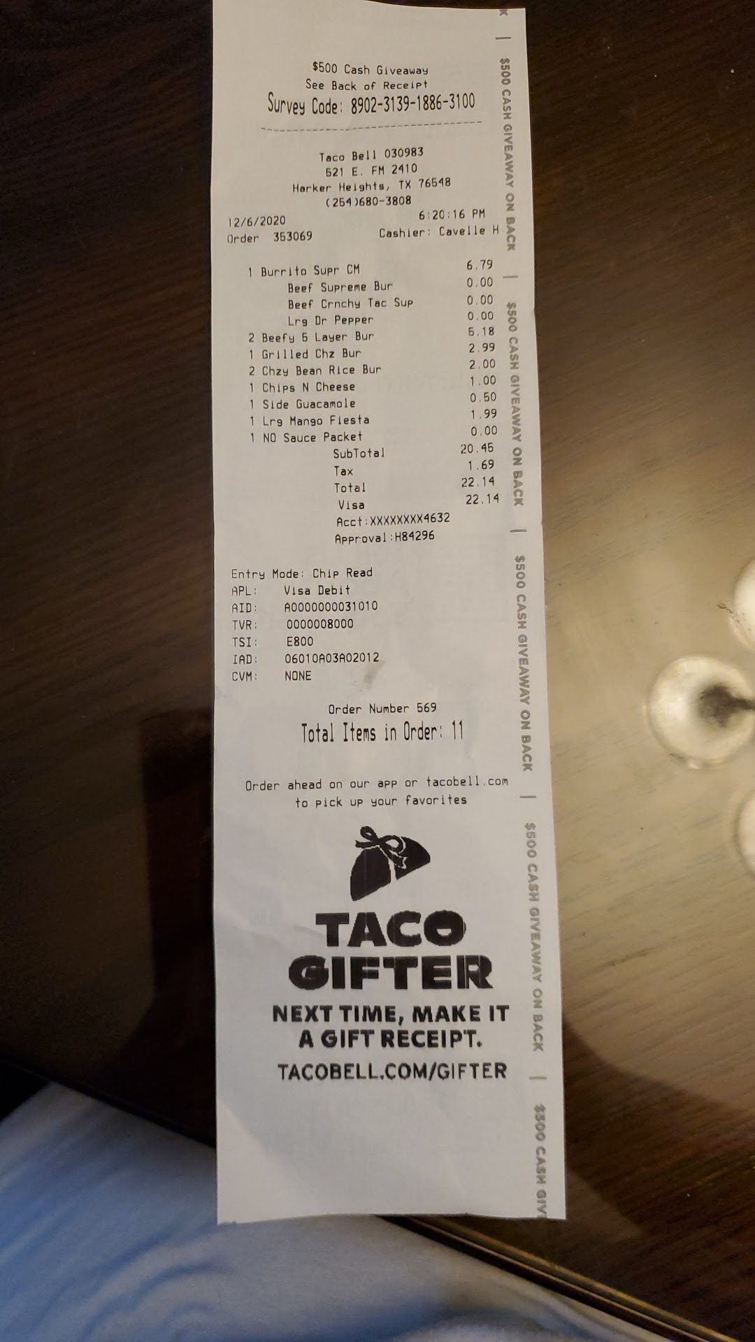 Read moreIt's Taco Bell, not your favorite Taqueria.However, where else can you get a complete meal for $5? Taco Bell has been a dinner saver quite a few times when it has been late kids games and nobody wants chicken or burgers and it is open a lot later than most other fast food places. I must say this visit was different than the other times I have ever come, normally the Baja Blast is usually out so they must have just gotten a new filter in or they finally changed it out, as this time it actually tasted like a Baja Blast out the bottle and fresher if that makes sense. So that was definitely a surprise when I took a sip. Of course I had to come for the nacho fries since they won't put it on the menu as a regular. I forgot to ask for fresh fries, as the ones ordered were slightly soggy and they didn't even fill the boxes up completely which ticked me off. Then they threw them all in a bag instead of using the actual boxes they have in the store. The taco shells tasted stale,like they had been sitting out all week unwrapped. The only thing that turned out okay was the burrito, and again they must have just brought out a fresh batch of meat because this time the meat wasn't soggy and tasteless, it actually looked like ground beef and had some taste to it, so that was pretty surprising. I mean I understand that Taco Bell isn't a culinary delight taco place so it was nice to actually have something taste alright. The service was friendly and fairly fast on this particular night. I still must say I was disappointed with the fries especially with them being such a favorite, however, next time I will do a walk in and ask that they be dropped fresh and the boxes are filled up completely. Overall, this visit was one of the better ones I have had when I chose to get Taco Bell, the kids like it so won't be writing it off yet and again where else can you get a $5 complete meal or something like it late night? Hopefully the quality of food and drinks stays like it...