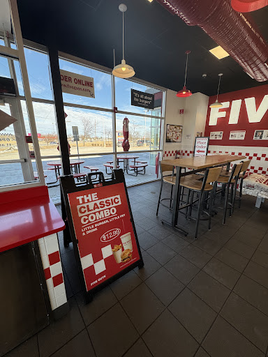 It’s been a while since we have eaten at Five Guys. This was a new location and we decided to give it a try. We don’t really eat fast food but they make their fries with Peanut oil and they are the main reason we went. Love the fries. We got a burger with two patties , cheese, onions, peppers and some mayo. We knew the food was over priced but we wanted the fried mainly! Did I mention we love the fries there lol. Anyways, the burger was disgusting. The meat was fresh just like they advertise but had zero flavor. Just two patties full of grease and no flavor. The peppers we asked to be sautéed and they were still hard. After two bites the peppers became the best part of the sandwich and that was bad. We got a shake and the shake is always good there but for the prices they want there isn’t any excuse to cook meat so badly. This is exactly why we eat at home. Maybe I’m spoiled but I’m use to flavor in the meat. I never write complaints but felt like I need to because lately these places over charge and think the food is good. You have to have zero taste buds to like that meat and to make it worse I was in the bathroom 30 minutes later at home begging for the pain to go away. I don’t know about you guys that read this review but I’m tired of spending put hard working money on below average food. I know you get what you pay for but this is why I’m writing this complaint, for 40$ plus dollars for two people the food should be at least eatable. Tired of these corporate company’s serving us Americans the worse foods the world has to offer. No complaints on the employees they all seemed nice and did their best with what they had to work with. However the cook could of done a better job...