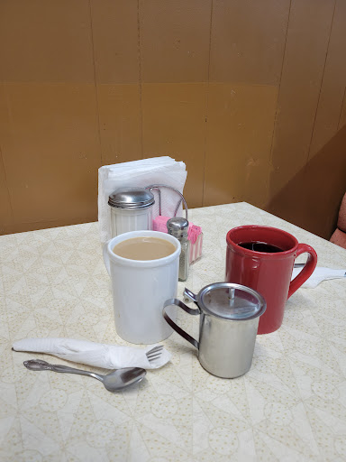 Read moreThis place needs major remodeling. Ceiling tiles are old and falling off in more than one spot. We sat in a corner booth and the walls and corners and plywood shelves that were surrounding the back of the booth were full of dirt, dust and dustbunnies caked on fake flowers in 3 vases. We would have left but it was late in the morning and we had already gone around town with restaurants packed. Food is okay. I asked for over eazy eggs and they were more like over cooked, not even over-medium :(. I asked for 1 bacon à la carte for my sons plate and it was plasticky, cold and was 80% fat/ligament, hardly any meat. Salsa was ok, but a little bland, nothing special. Coffee mugs were really big which my husband and I enjoyed. I think that's why I'm rating it 2 stars. Hubs and I discussed quality and why there's fine dining. I don't think we'll be back unless it gets cleaned up...