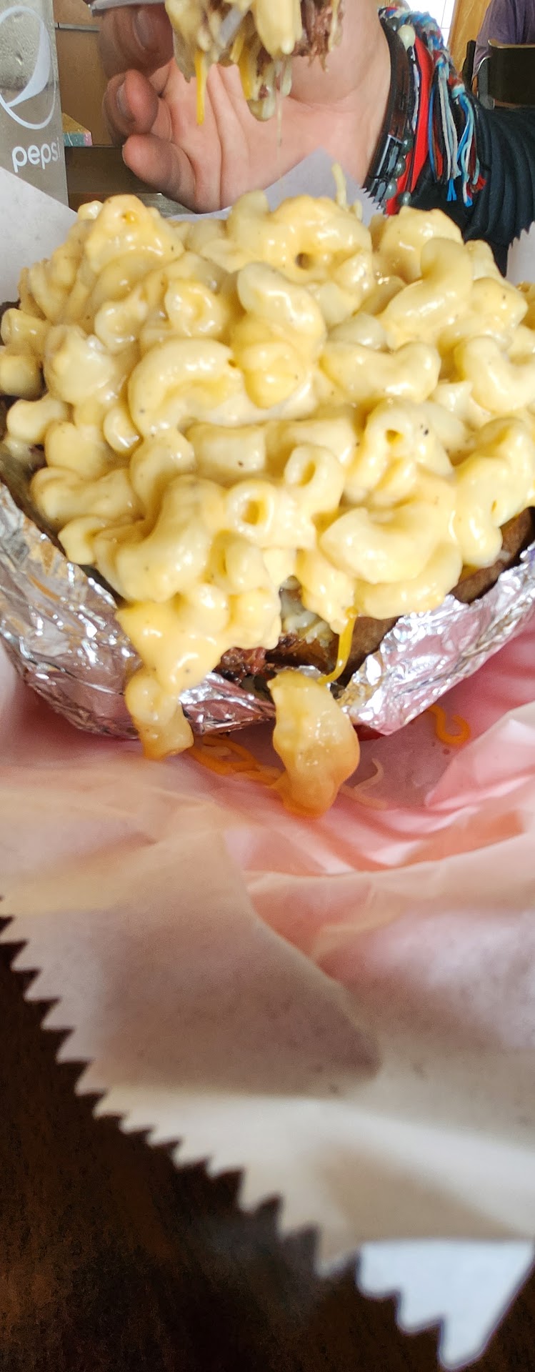 We ordered: BBQ Nachos- Great, cheese needs more cheddar flavor, but good. BBQ Fries- I loved them. Delicious. BBQ spud- The Mac gave it a different take. 3 Meats Sampler- Meat was tender BBQ tacos- Please consider adding Pico or chimichurri as options ;)