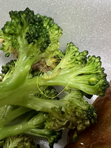 Edit: I spoke to the manager named Aaron today because last night they were closed by the time I Saw the worm . According to Aaron, broccoli has worms so ‘yea it’s normal ‘ he said. He said no matter how many times they wash broccoli, the worms are inside. I told him mine was just sitting on the broccoli and he again said ‘yea it’s normal to have worms.’