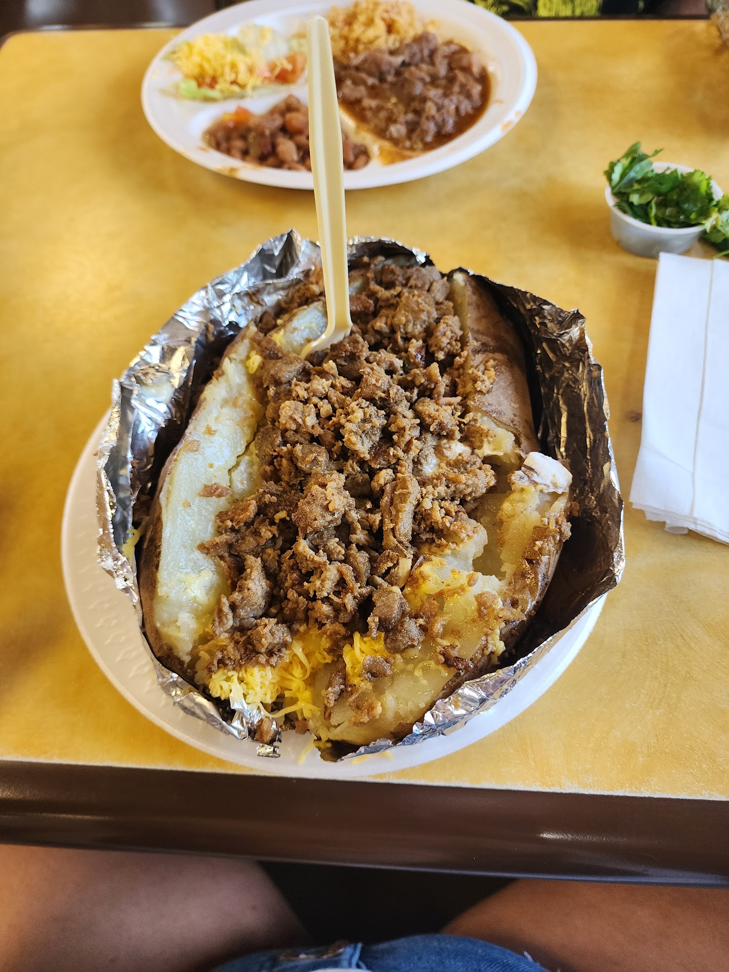 Read moreCame by to have lunch with my daughter while she was on her lunch break from college. We waited 29 minutes to get our food. Our order was places at 11:18 am got our food at 11:47. Saw everyone in the drive-thru getting their orders while we sat waiting. Very upset at how long it took. We wanted our money back but we are all about helping local businesses. I don't think I'll be back. They had plenty of employees and some of them seemed to just be standing around and talking. One employee sat near us (well after we sat down) on their lunch break and got their order way before ours. Maybe it's a perk of working there. I don't recommend stopping in, maybe order out. I don't believe the food was worth the wait nor the 18 dollars I spent for 2 of us. Our order was 2 ham and egg tacos/ chips with queso and an enchilada plate. Next time we will go to Tejano Grill.