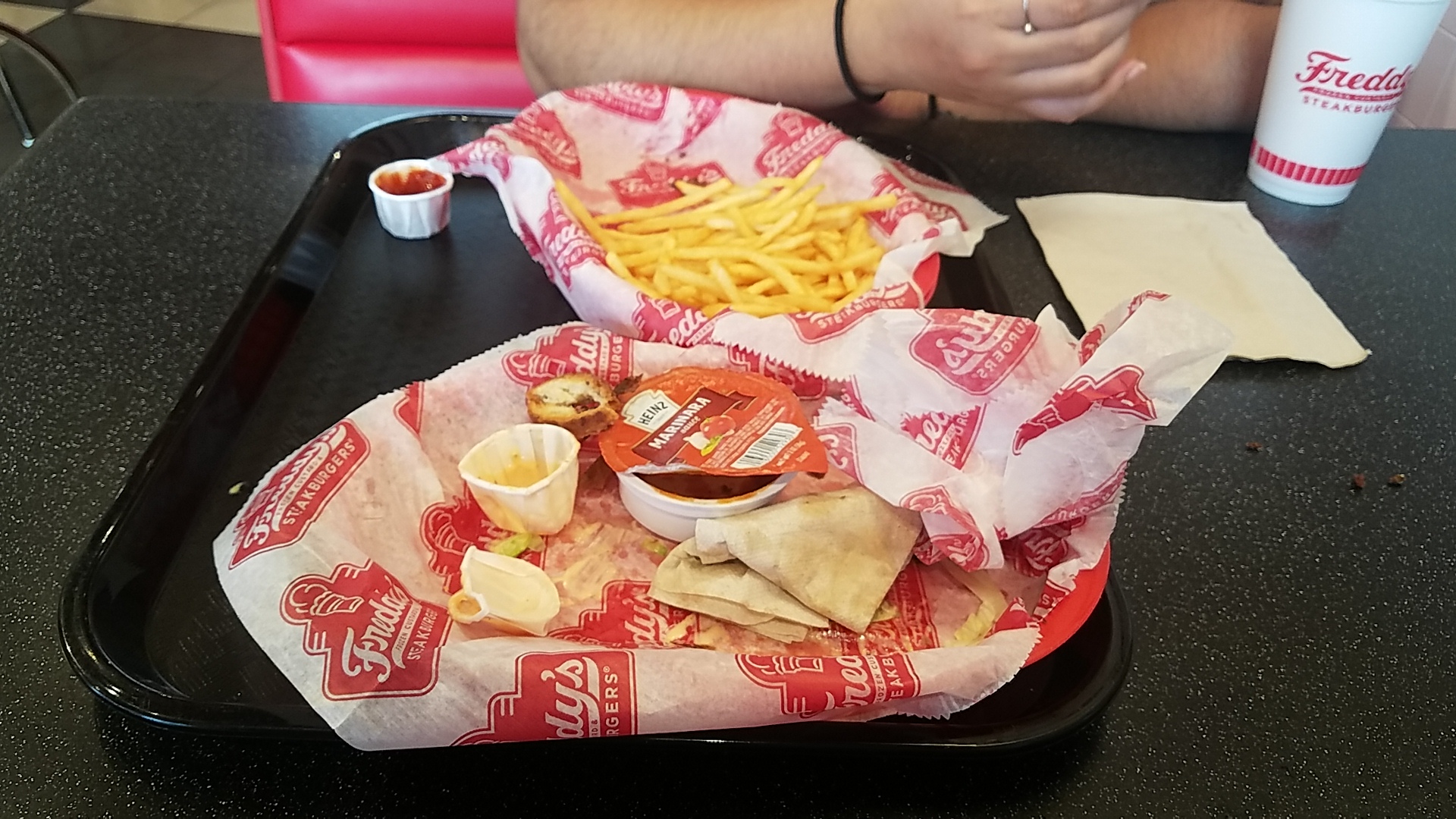 Read moreSo far been here twice and have enjoyed my meal both times ive tried their signature steak burger and patty melt both were delicious. Oh and they have the chili cheese fries which are also quite good. Depending on how you order a meal for two will run you roughly 20 to 25 dollars. Sadly after i eat my whole meal im too stuffed to have their custard which is ashame because it looks really good overall i enjoyed it food was ready at a resonable time and it was really good oh fry salt and freddy sauce is pretty good kinda reminds me like thousand island dressing. Not to big a fan of the vinegar in the fries though i did put alot on a single fry my wife enjoyed it though. The trick is put a little bit every to give the fries a different taste.btw the vinegar is a condiment its not in their fries but...