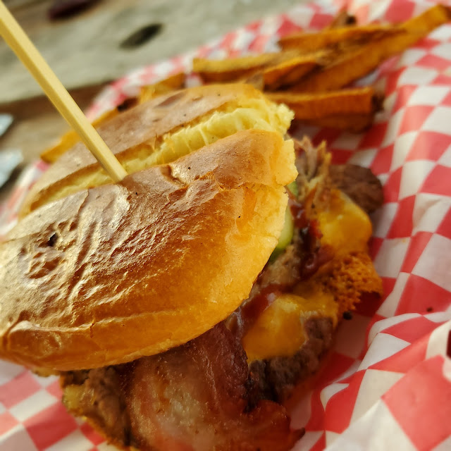 Read moreThis place was the cheapest in Broken Sproket and the best tasting imo!!! They post the prices and pictures of the food so it's easy to decide! The smash burger included a beef patty, brisket, and bacon!!! The brisket tacos were immaculate and the peach lemonade was soooo amazing I asked for seconds. Give the sweet bbq and spicy bbq a try too! And the fries were seasoned...