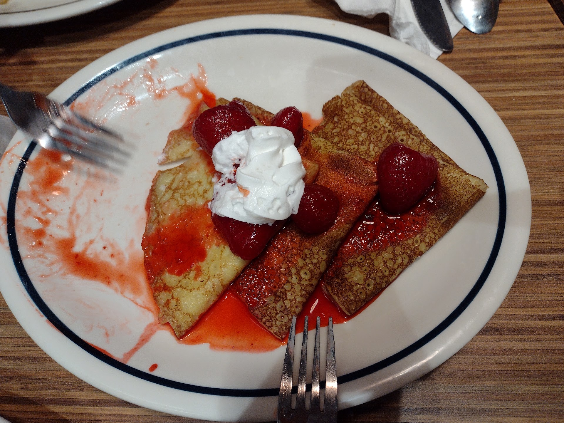 Newly opened, restaurant and restroom was pretty dirty. We were warned as we walked in by other customers that we might have trouble with the service. We didn't wait to long to be seated. Our server was super friendly but not very experienced. Out the gate my daughter's drink was brought incorrectly. Wife ordered the cowboy burger, which had a great presentation also came with a free hair on the bun and a very very crusty plate bottom. Daughter ordered some crepes and a brunch burger with an over easy egg. Egg was overcooked and dry. Crepes were delicious. DIL kept it simple and ordered a classic burger. No issues there. I ordered the Cheesy Bacon Ranch plate with side salad. Entree was absolutely delicious , the salad was absolutely boring ( pile of greens with two slices of tomatoes and a bunch of sliced onion. I even got a crusty plate also for free. Server was very attentive to our concerns and advised management. That's pretty much where it ended. All in all not a very good visit. Server was really nice but she kept disappearing and it took a while for her to come check on us. Hopefully they get better. Finally got something nice on the east side and it probably won't survive if it keeps up like this./ 10-7-2023 visit, stopped in for bfast after a night on the town. Looked like a very slow night. Place was clean and quiet. Service was ok, just a tad slow but it was actually an improvement from last visit. Had the steak and eggs with was a roll of the dice considering it's not a steak house. Verdict?, will definitely not order again. Steak was cooked to my preference but it was very bland and not tender at all. The other people with us had a burger and bfast sandwich meal. Looked delicious. They had...