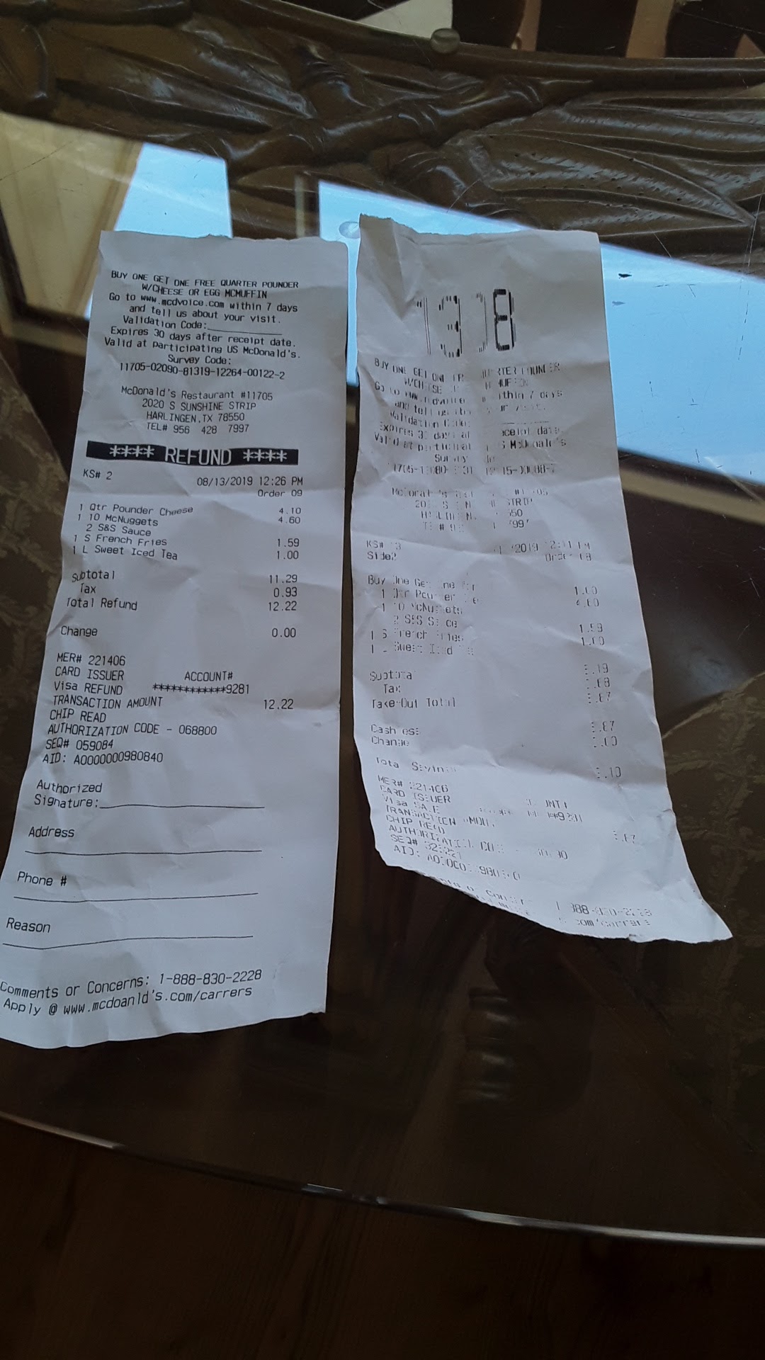 Read moreMy first visit since the remodel & I am disappointed! Ordered at the kiosk but no receipt was available; visited the restroom, dirty...a fellow patron alerted me about my left shoe dragging stuckon toilet tissue. GROSS. I UPLOADED A PIC OF THE TISSUE, BUT CENSORS REMOVE IT CONSTANTLY. THAT'S DISINGENUOUS & ABUSIVE! I got my order delivered, I ordered for eatin but was served in a bag, then I was surprised to NOT finding any tea, sweet or not at the drink station! The caring staff served me half sweet & not from somewhere in the back kitchen. After consuming the first cup, I tried serving myself more tea, but it still hadn't been brought out. There were maybe 10 patrons at the time, not a rush or a demanding crowd. The food was warm, but I was surprised my chicken sandwichs' price increased by 19% from my last visit to any McD's. Is MCDONALD'S on OPEC's pricing scheme? Prices rise mostly to never come down, like gas prices, with no justification. Employee pay doesn't increase but profits do!? Dinks are still $1. Better management could make it a...