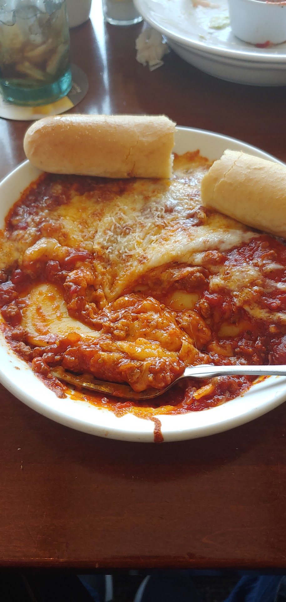 The place did have a smell of Parmesan cheese and it was overwhelming! So much that we almost decided to get up and leave before we ordered. The food was fresh, and hot. Very tasty chicken Alfredo (it was $16.99 for lunch plate with salad and bread sticks). The serving was big. Enough for two portions. The bread sticks were hot and fresh. Armand offered us a sample of different beverages, and I did end up bringing home a bottle of their syrup. The place looked clean, the silverware did have spots. Would I recommend this place? Yes, but make sure you have enough...