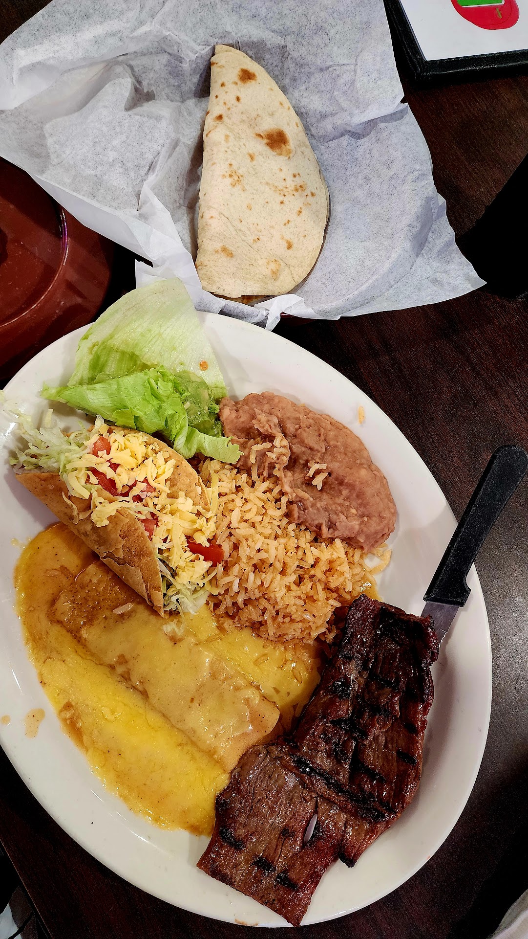 3•15•25 1st time here decided to come in and give it a try and see what they were hyped about. Look guys it's good but I wouldn't say the greatest the menu looks big but it isn't alot of repeatorial foods anyways ordered the Joe's house special comes with fajita, 1 cheese enchiladas, 1 taco rice beans and guacamole. Now fajita was thin and ok, the enchilada i don't wet think it has enchilada sauce it's just cheese so meh! It's too bland tortilla inside. Isn't even moist, just dried with the cheese, so technically, this is a lazy enchilada IYKYK.. tortillas, they are not even soft and get super hard. I had to tell them to bring fresh ones, but I guess they make a stack earlier, and whatever is left, they reheat and aren't freshly made. Rice and beans, as usual, everyone's go-to on plate rice was cooked well. The other plate we had was enmoladas that were there. Like I said, enchiladas don't have flavor as it should be, so yeah, they bland. They are pricey, but it's not a restaurant. I'd say it's a must to go. For the portion, it's there, but the quality isn't. That's why I scored it a ☆☆☆ staff is friendly yet took long to attend us when they sat us down. Do I recommend it well? It's your call, but as for me, nah, I won't.. just expected better from all the hype. As usual, a restaurant gets popular, and then, in the end, it slacks serve cheap with higher prices. I know inflation, but that's...