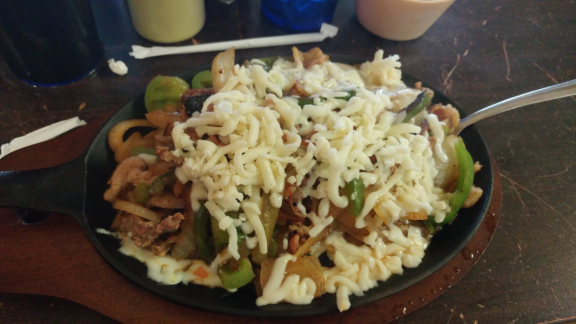 Service was decent. Waitress did a nice job of checking with us and refilling drinks. When the food came, it was “auctioned off” which is a pet peeve of mine. Food should be placed in front of the person who ordered it without having to ask, “who ordered this” and “who ordered that”. I ordered my tacos without tomato’s but when they came they had tomato’s so that caused some confusion during the “auction” and my son ended up with my plate for a bit but the waitress did discover the mistake and got it corrected quickly.