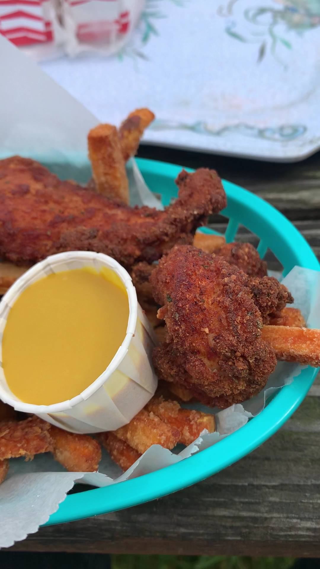 I decided to get the chicken tender basket. Overall, the price is a bit steep for 3-4 chicken tenders and some fries at $15 (I added a can of Pepsi ($2) and upgraded the regular fries to sweet potato fries ($1) so my total ended up being $18 for what in most places is like $10. Still, the chicken was tender and the fries weren’t bad. I did order the honey mustard to dip the chicken in but it tasted less like honey mustard and more like honey mustard.